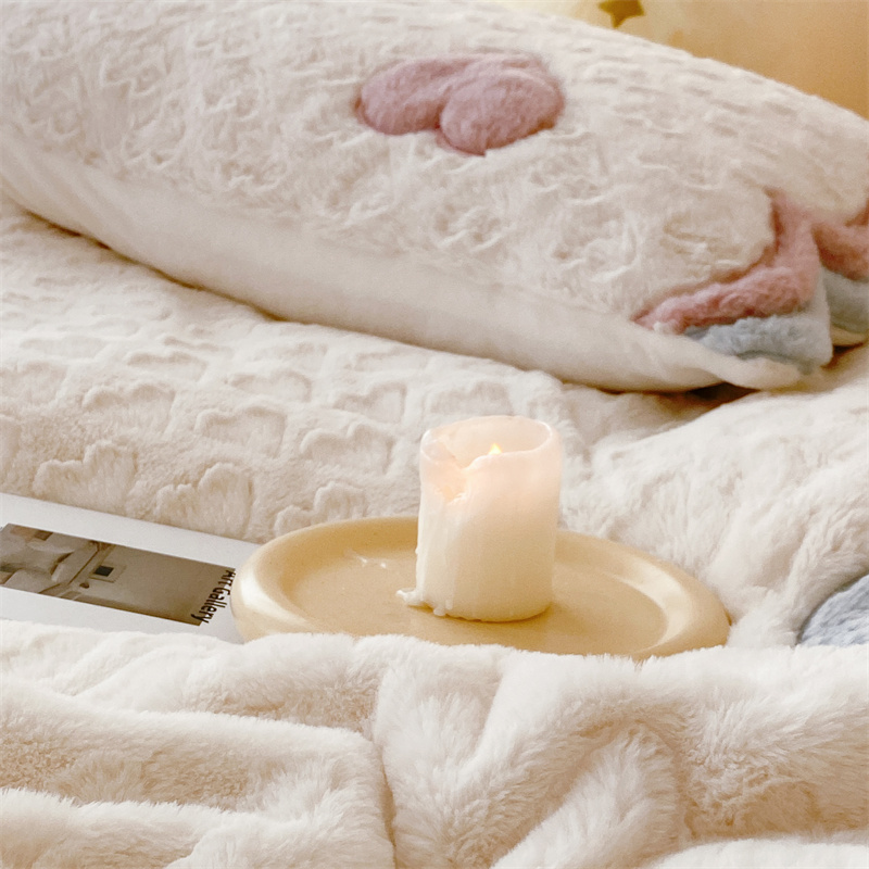 (总)星野 2025新款高克重牛奶绒贴布绣四件套-波点兔,波点兔