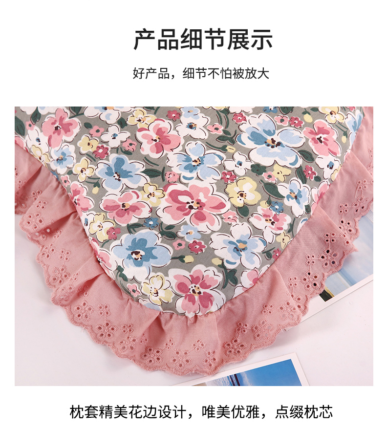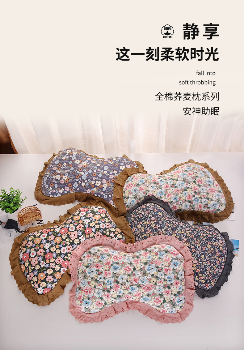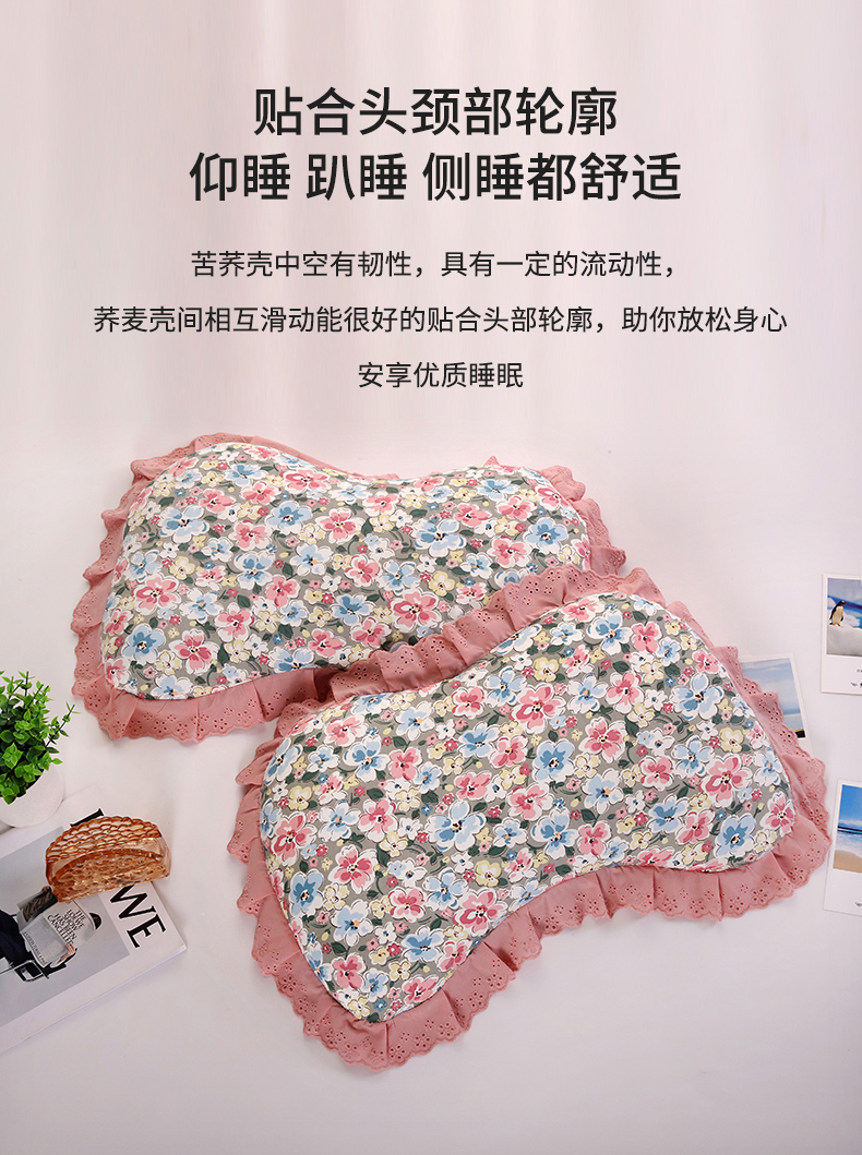 (总)明星枕业 2024新款韩式花边荞麦纯棉枕套全荞麦壳护颈枕