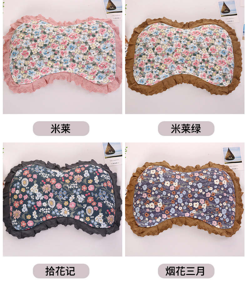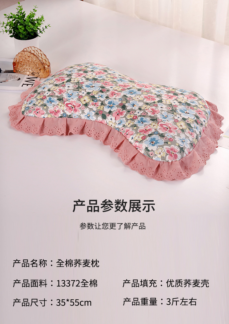 商品名称:(总)明星枕业 2024新款韩式花边荞麦纯棉枕套全荞麦壳护颈枕
