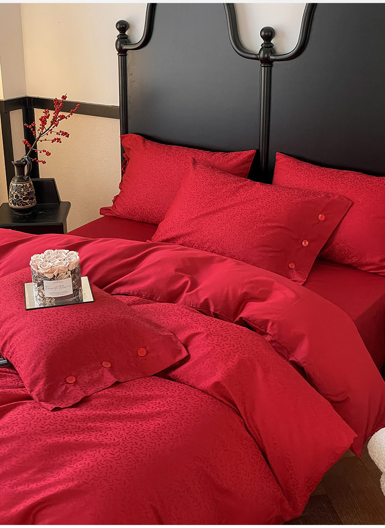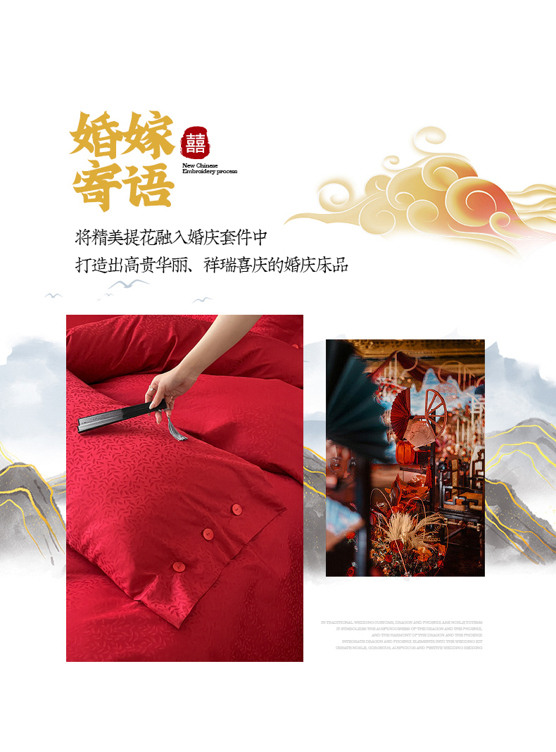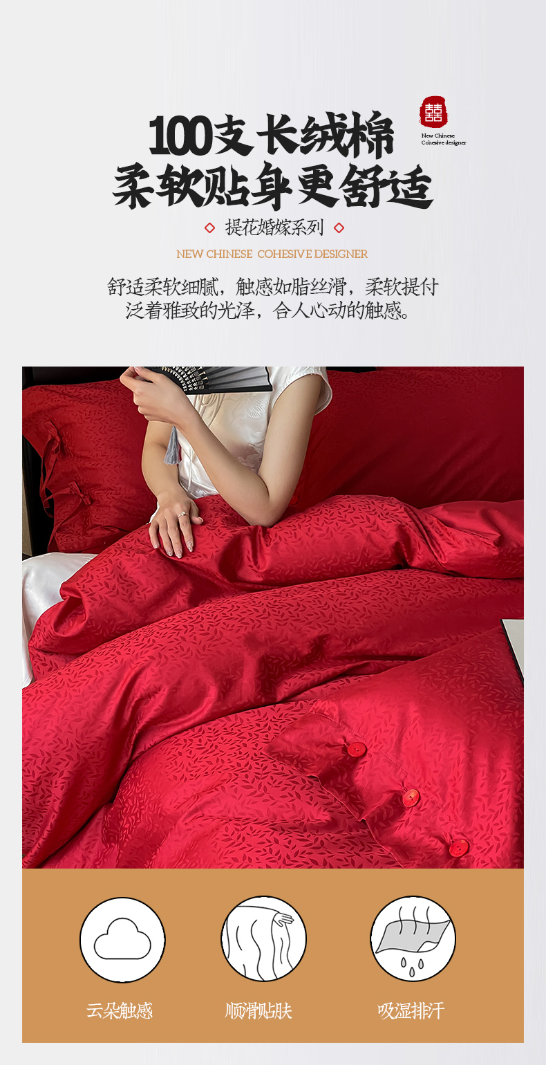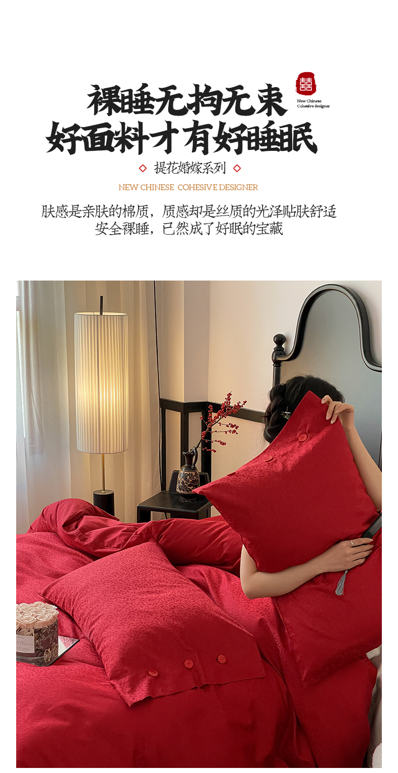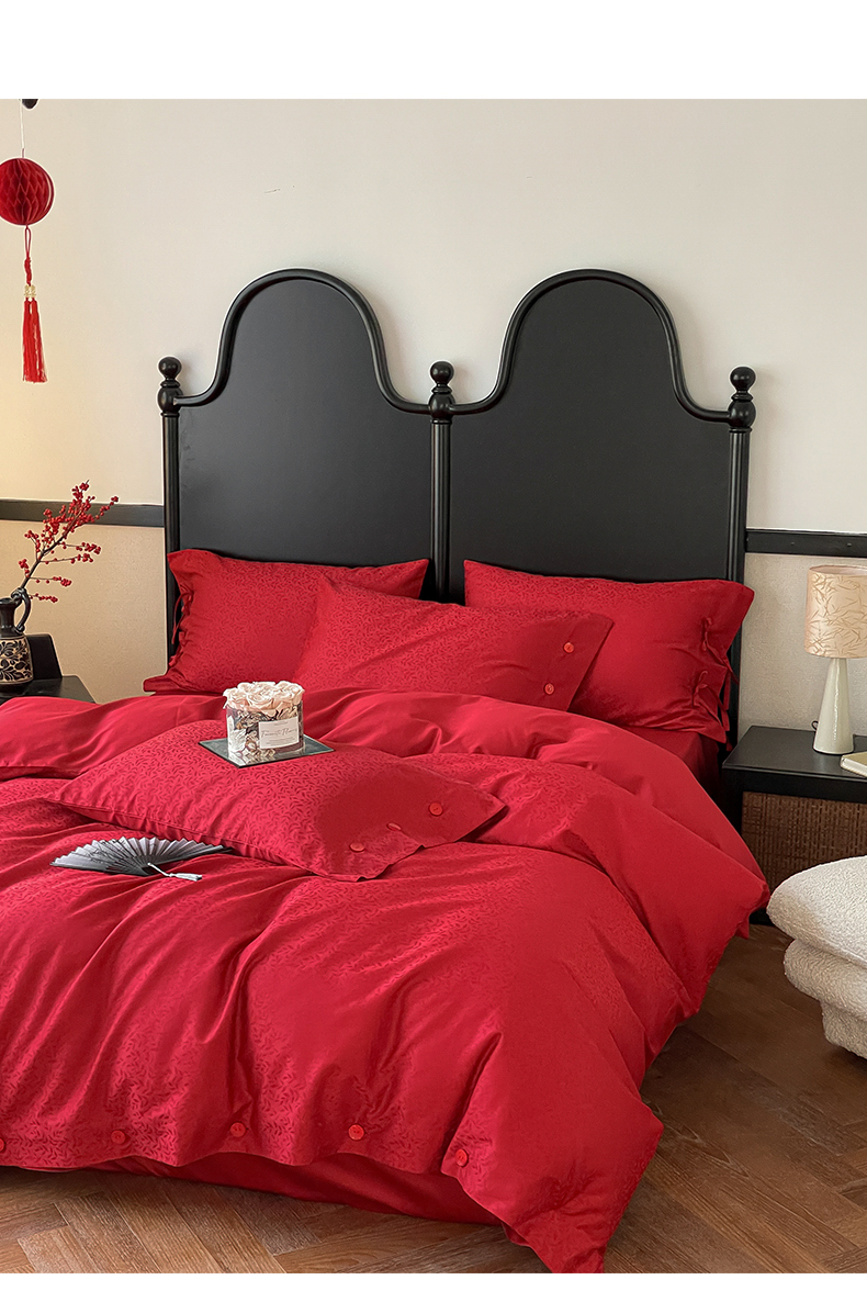 商品名称:华超针织 2024新款100支长绒棉提花四件套(喜庆风格) 环环相扣(纽扣款)