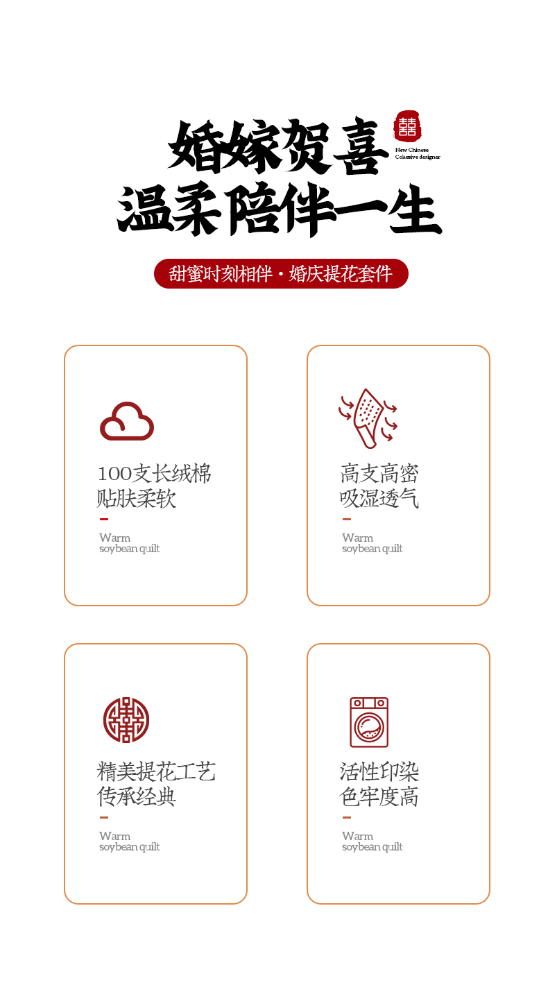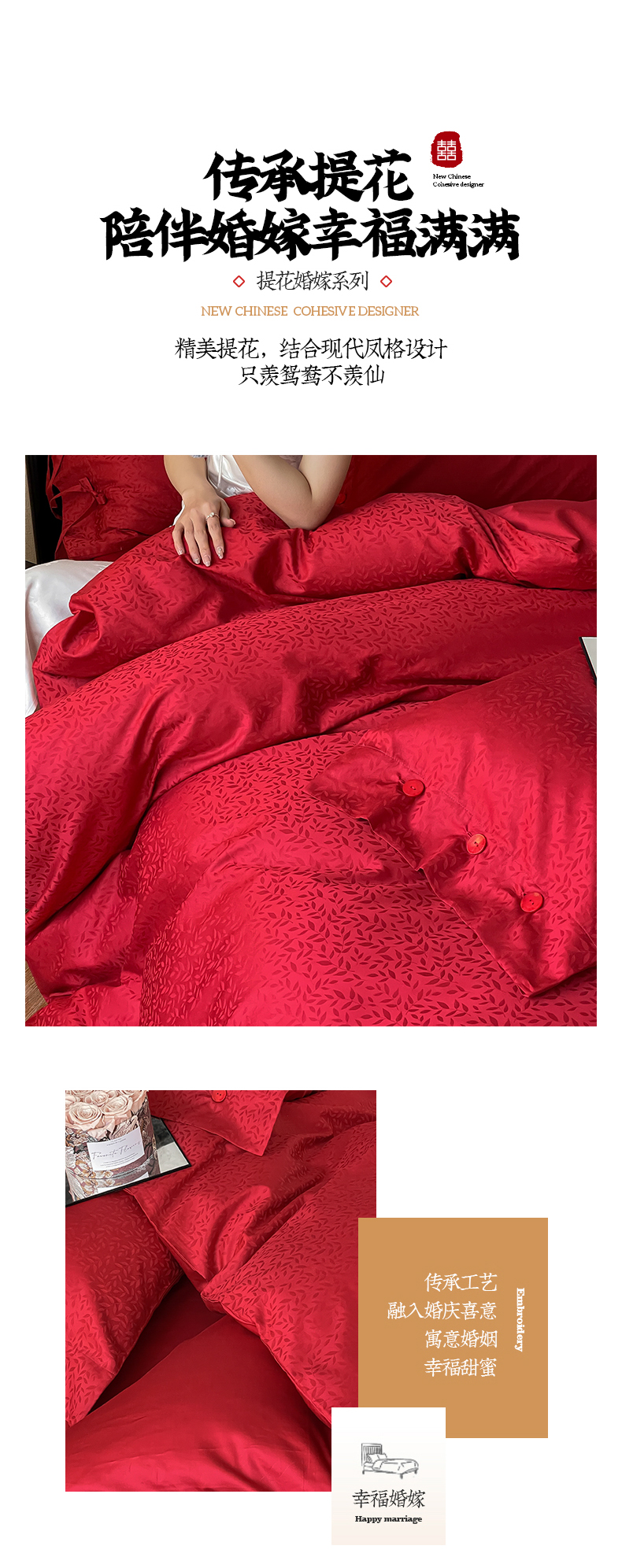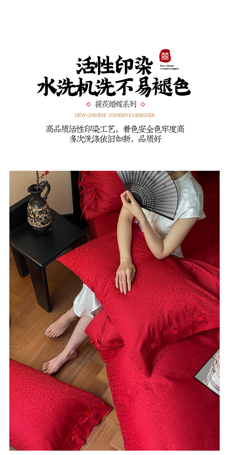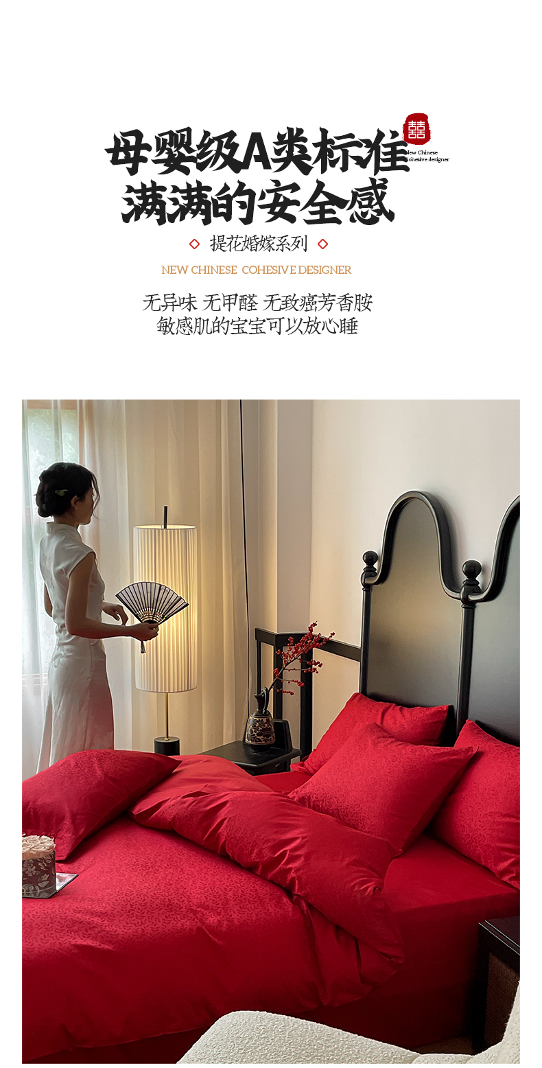 商品名称:华超针织 2024新款100支长绒棉提花四件套(喜庆风格) 环环相扣(纽扣款)