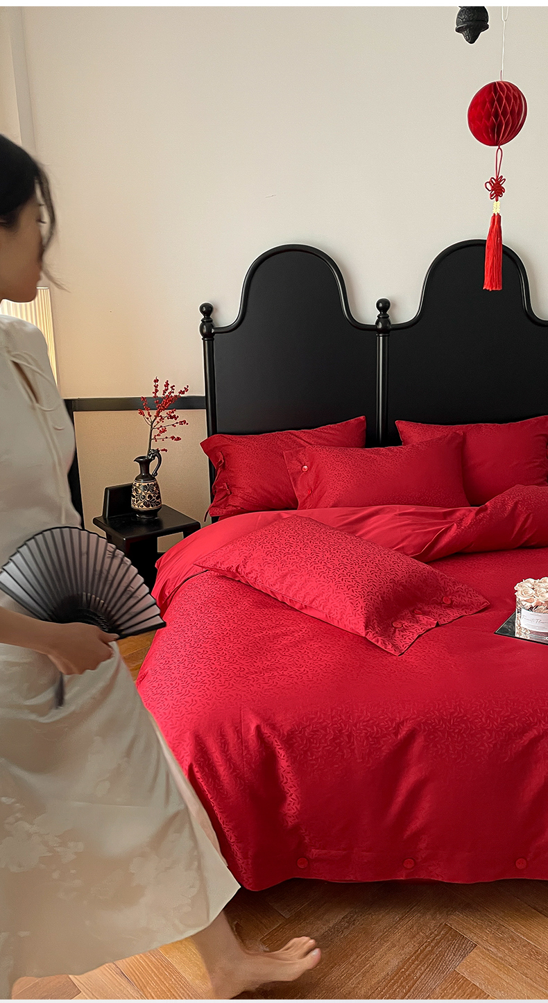 华超针织 2024新款100支长绒棉提花四件套(喜庆风格) 环环相扣(纽扣款)