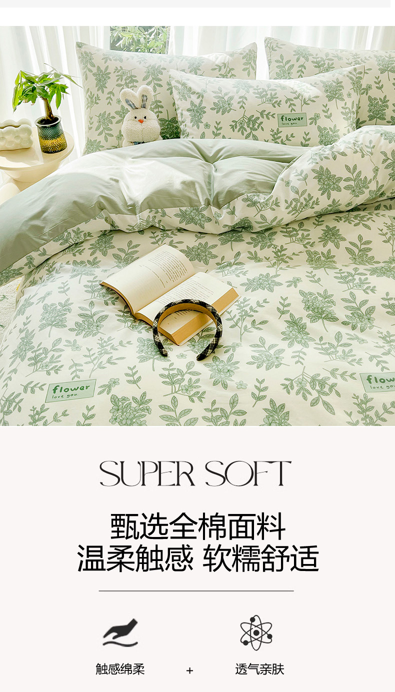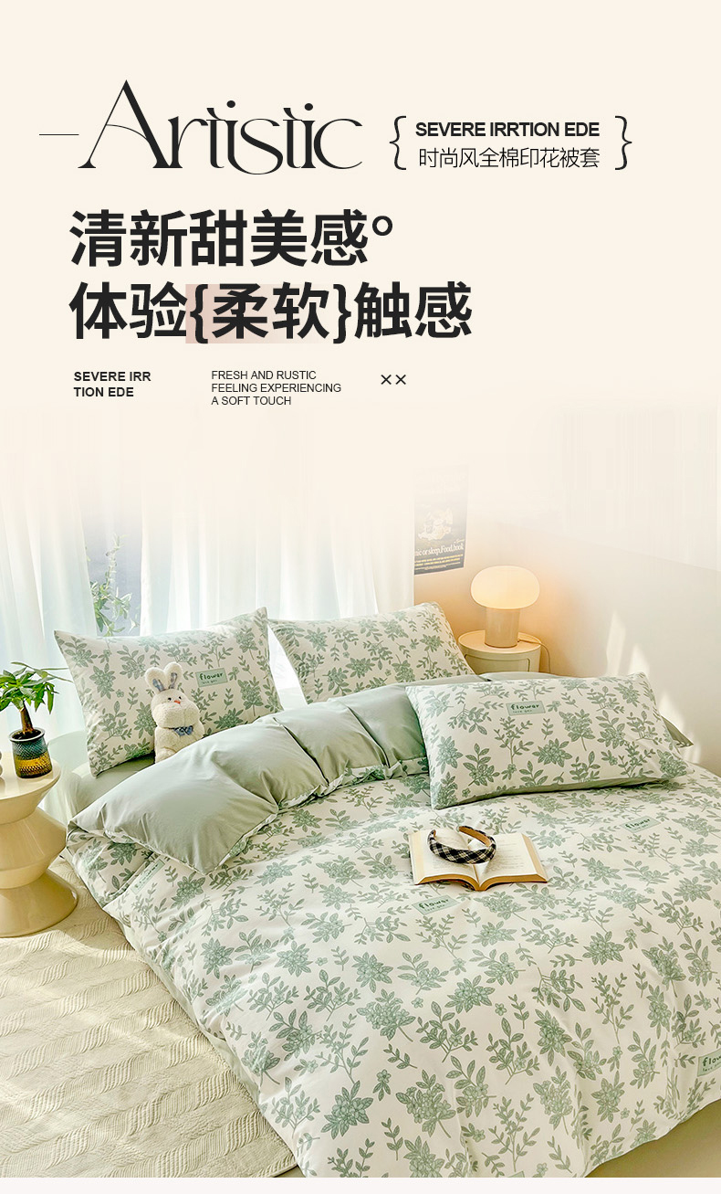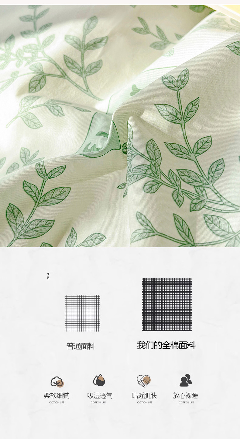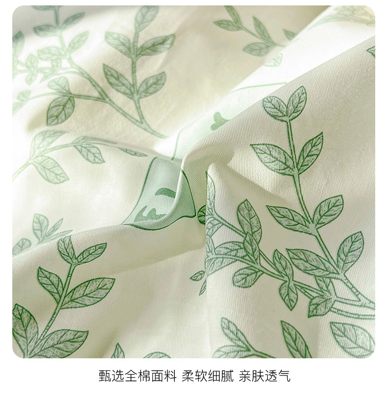 商品名称:倾慕家纺 2024新款时尚风全棉13070亲肤印花系列单被套 绿意盎然