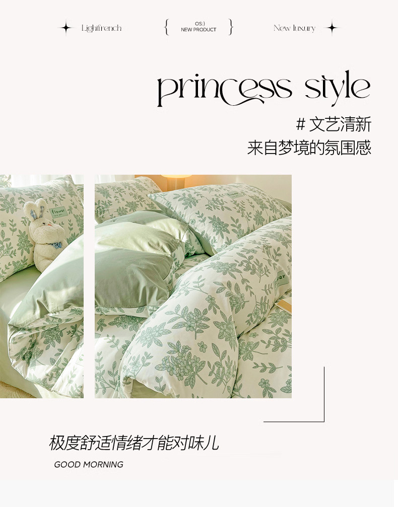 (总)倾慕 2025新款数码纯棉加厚磨毛产品系列四件套,蝶舞粉,蕾丝花粉,丽思黄,丽思兰,绿茵,梦幻屋紫,清风来咖,晚笙粉,云嘉粉,芷兰粉