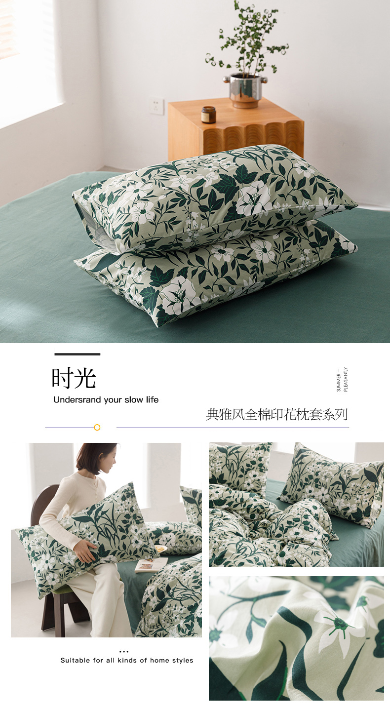 倾慕家纺 2024新款典雅风全棉13370简约印花系列单枕套 时光