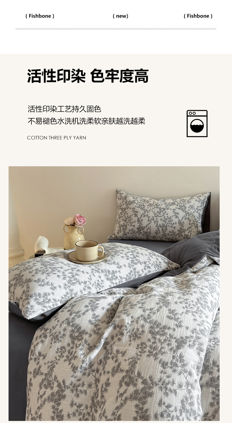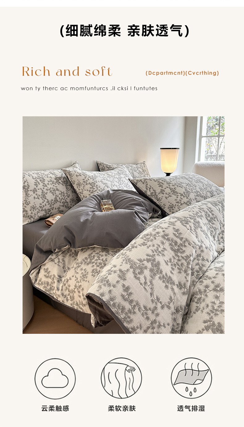 (总)宜代光年 2025新款60s全棉水洗色织提花磨毛四件套,执笔水墨-灰,红木林-深灰,言柒-暖橘,云树-灰,执笔水墨-咖,红木林-森林绿,云树-森林绿