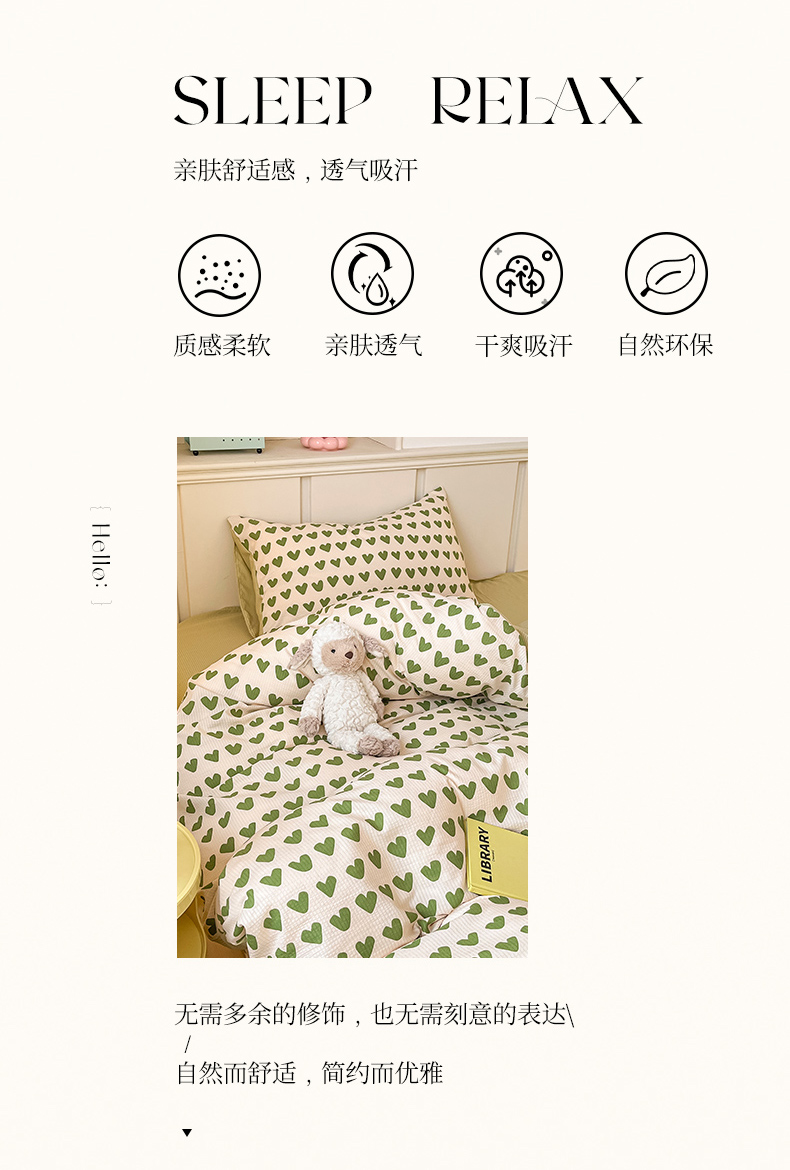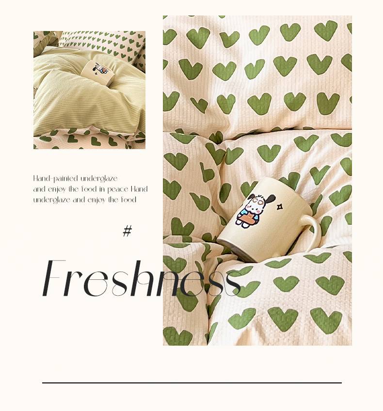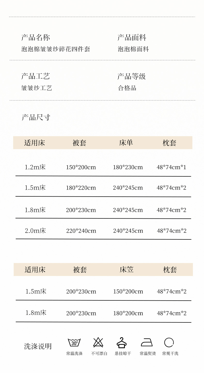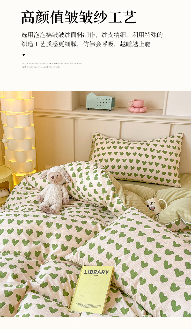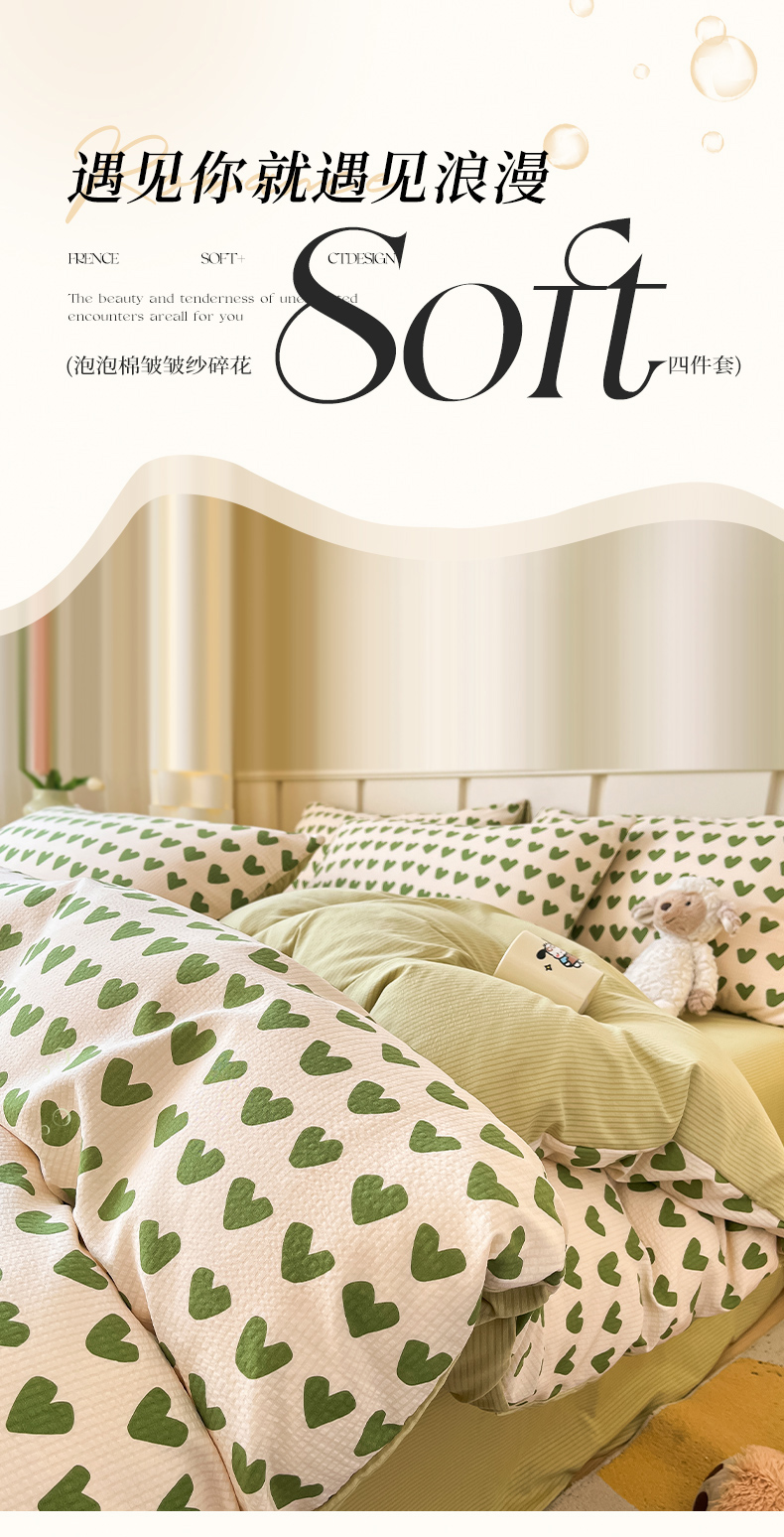 当前位置: 91家纺网 > 商品网购 > 床品套件 > 四件套 > 全棉普通四件套 > 梦之岛 2024新款A类母婴级泡泡棉皱皱纱碎花四件套 心动