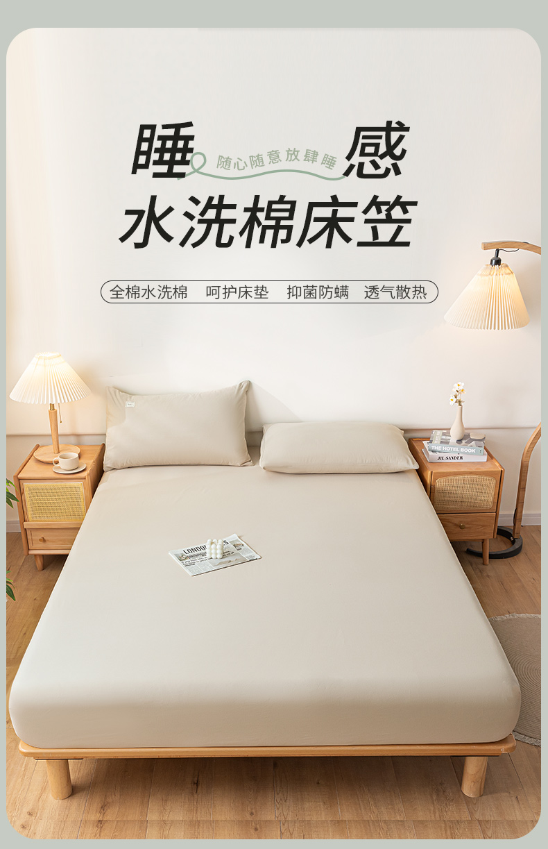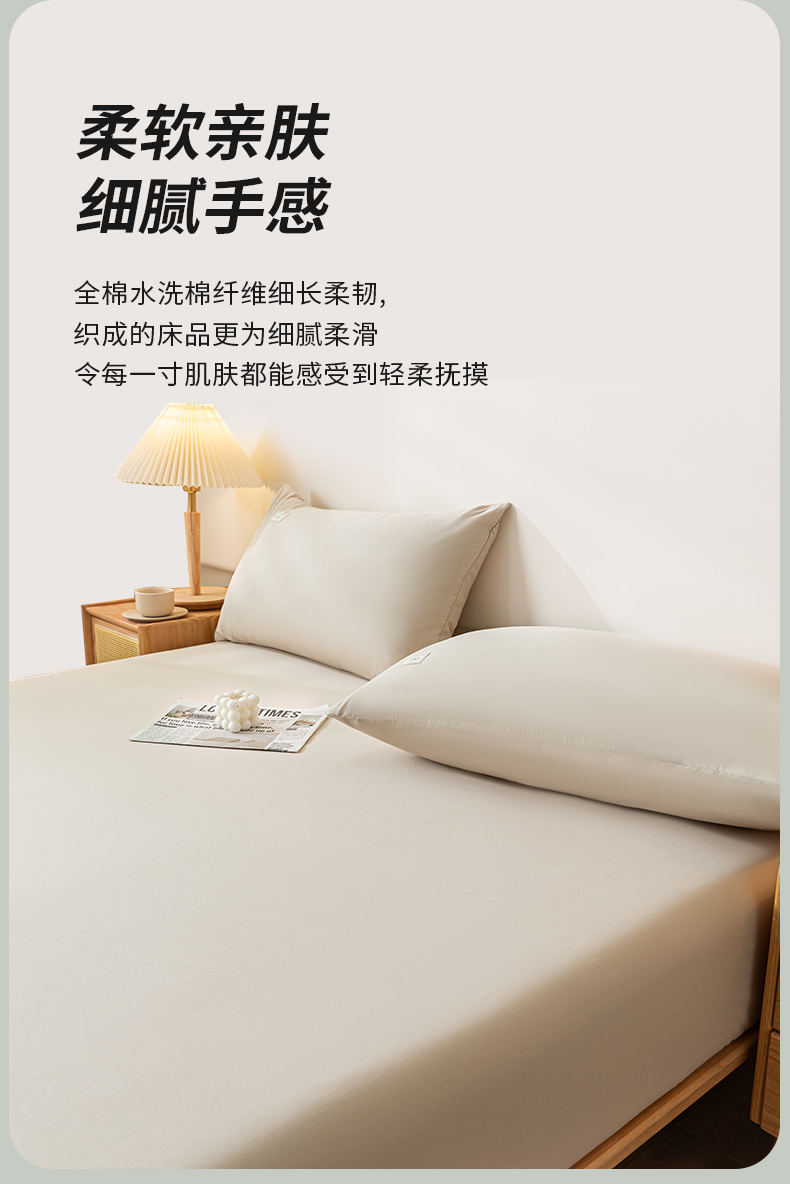 商品名称:ab家纺 2024新款A类40支水洗全棉床笠三件套 卡其