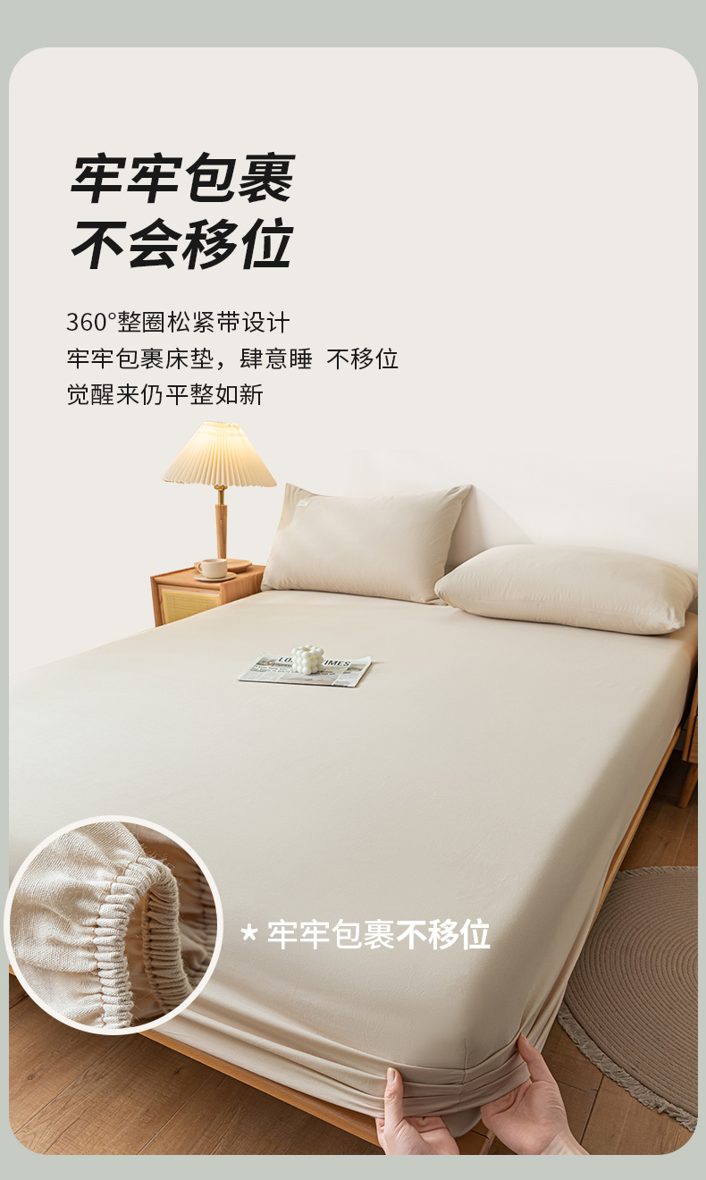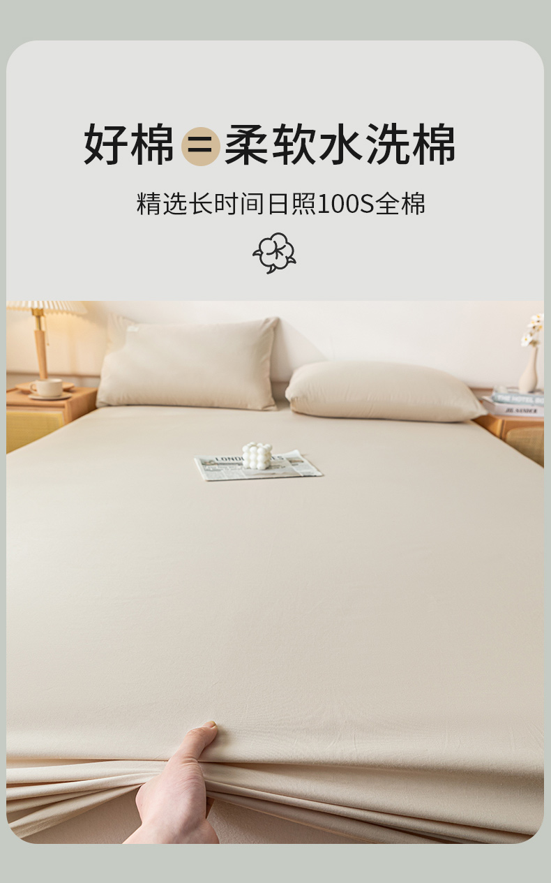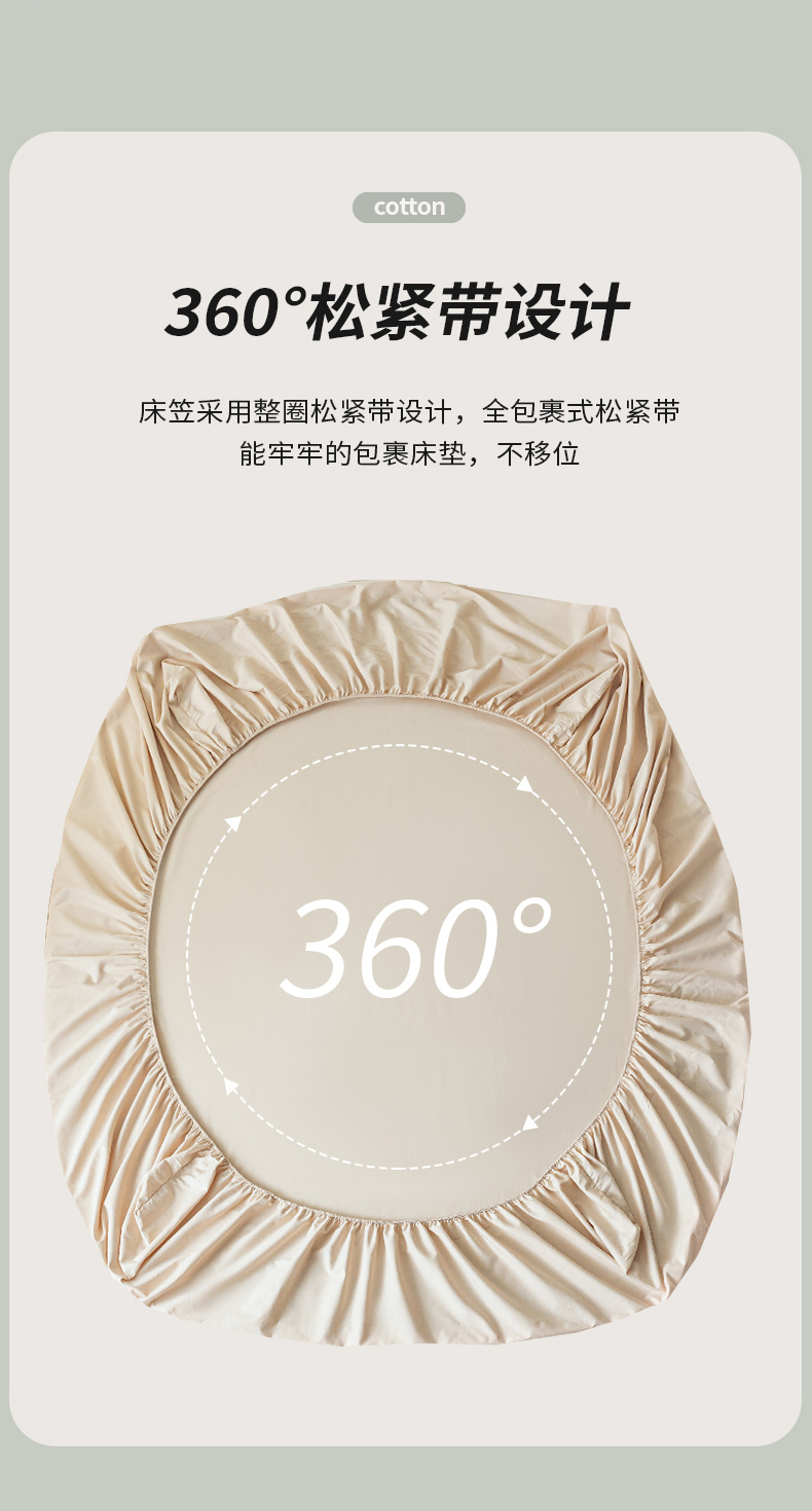 ab家纺 2024新款A类40支水洗全棉床笠三件套 卡其