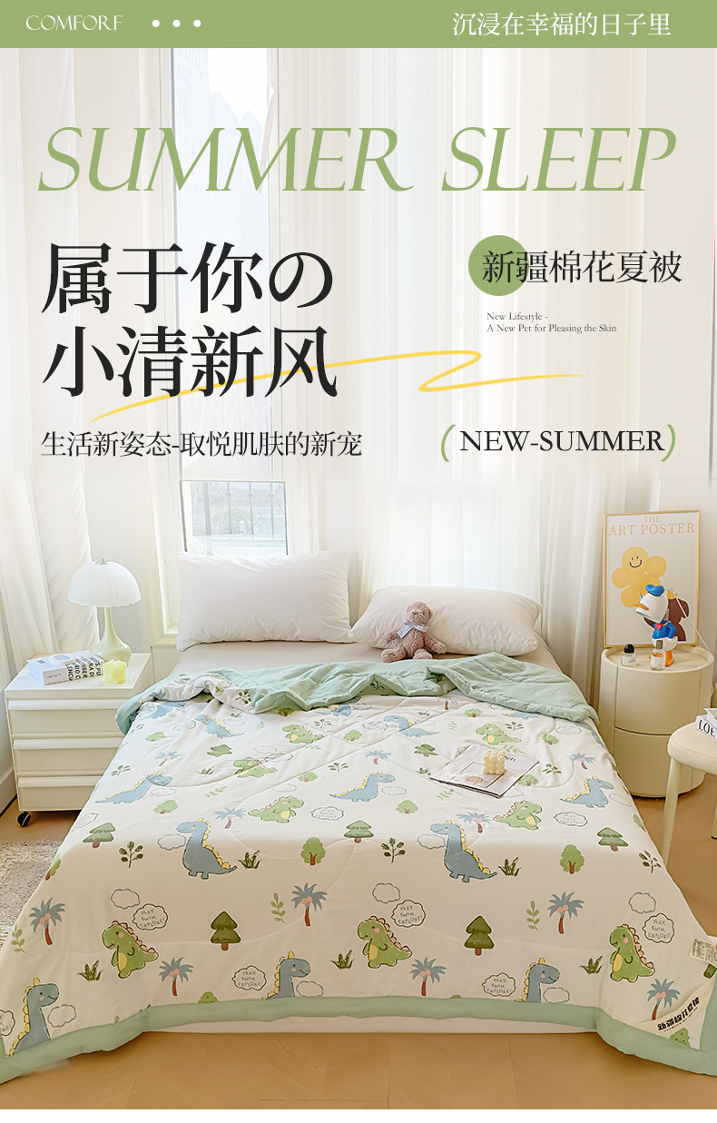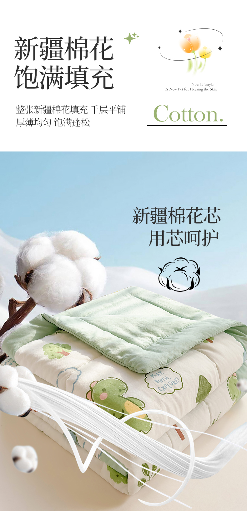 2025新款A类印花手包边凌香新疆棉花夏被 凌香恐龙