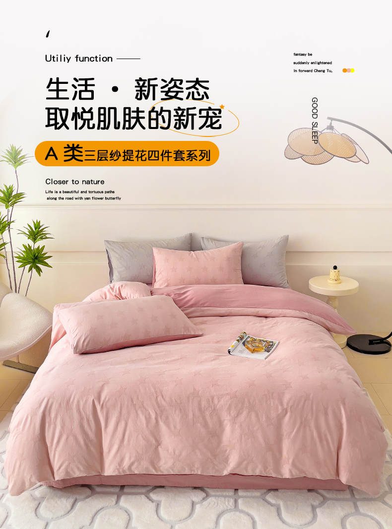 (总)静家居-简约原创家纺 2025新款全棉三层纱大提花四件套-星空,刹那-海蓝,刹那-明黄,刹那-杏粉,刹那木槿,星空-鹅黄,星空-萌绿,星空-暖棕,星空-柔粉,星空-松灰,星空-天蓝