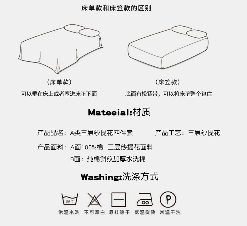 (总)静家居-简约原创家纺 四季款三层纱本色加厚提花四件套,本色-海盐蓝,本色-灰,本色-米咖,本色-松弛粉