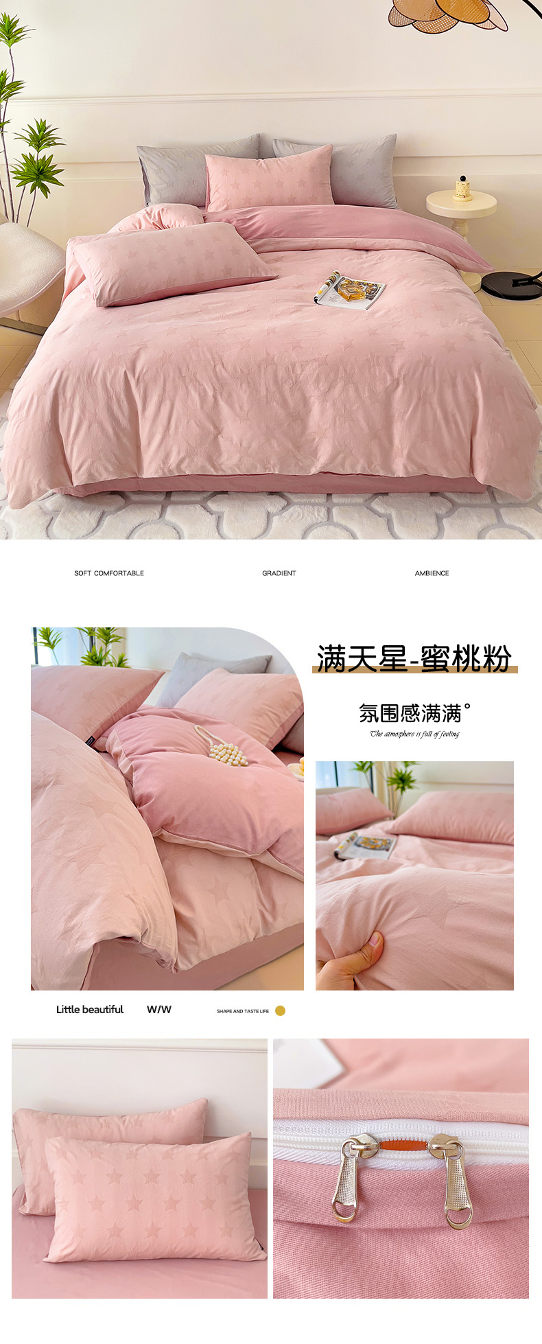 商品名称:静家居-简约原创家纺 2024新款A类纱布提花满天星系列 满天星-蜜桃粉