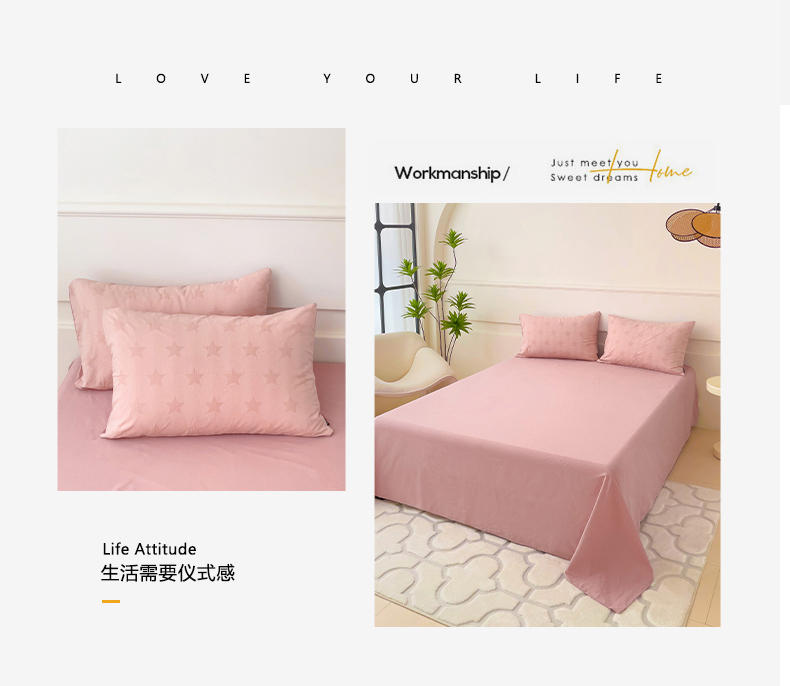 静家居-简约原创家纺 2024新款A类纱布提花满天星系列 满天星-蜜桃粉