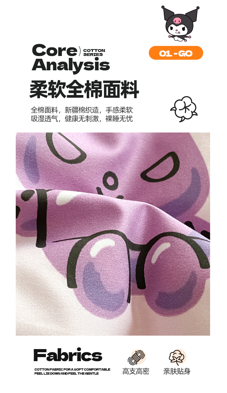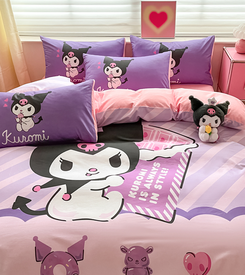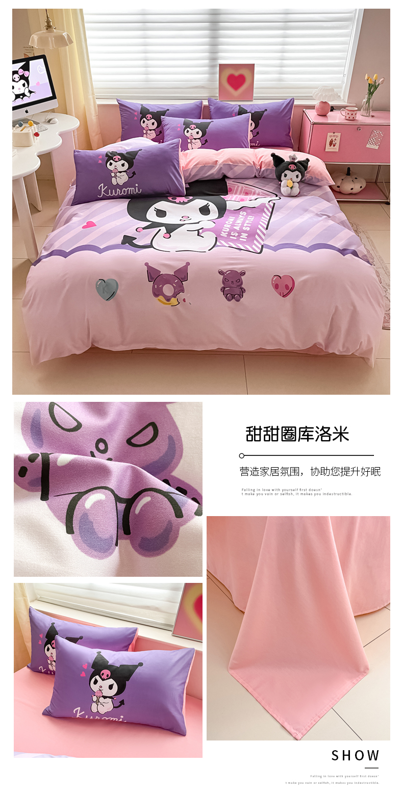 当前位置: 91家纺网 > 商品网购 > 床品套件 > 四件套 > 全棉普通四件套 > 金爱家 2024新款大阪全棉数码印花三丽鸥系列四件套 甜甜圈库洛米