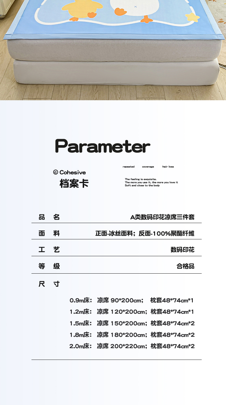 商品名称:博雅 2024新款1200D大版牛奶冰丝席 幸运鸭