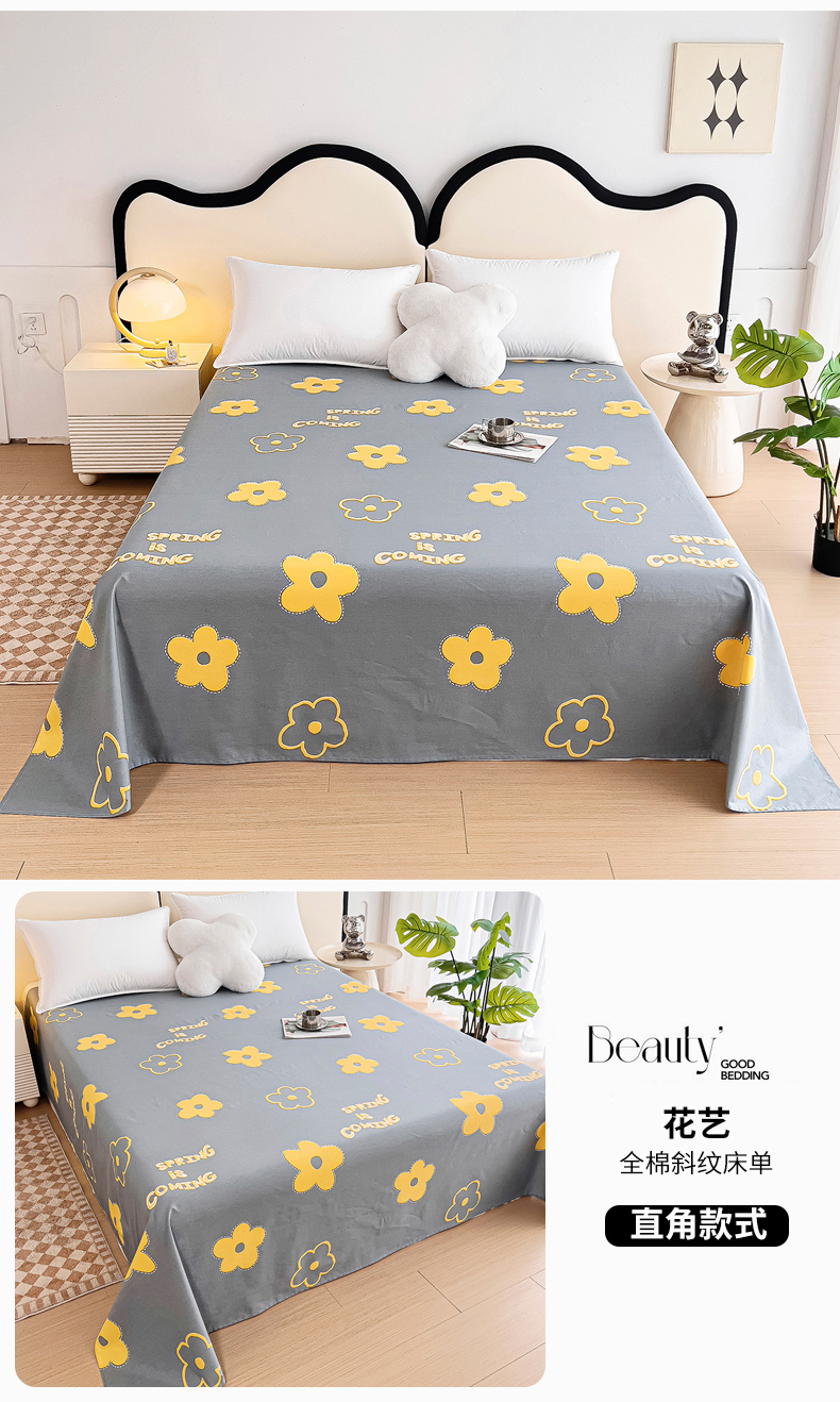 情煊家纺 2024新款全棉斜纹直角床单系列-印花款 花艺