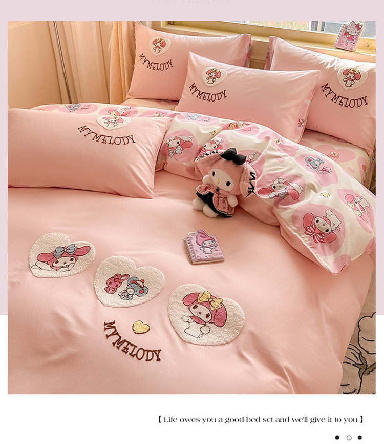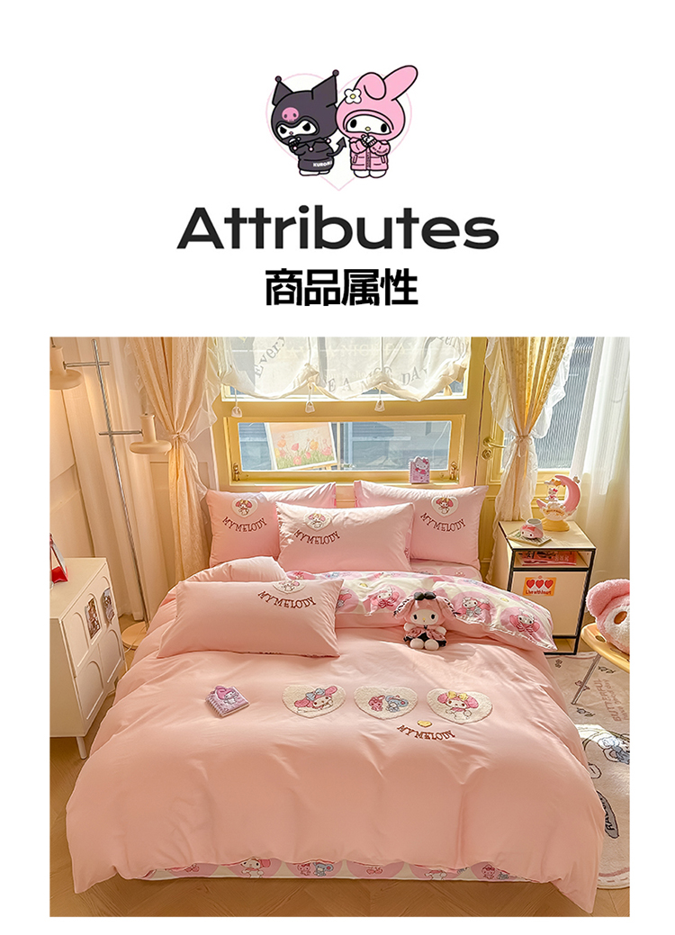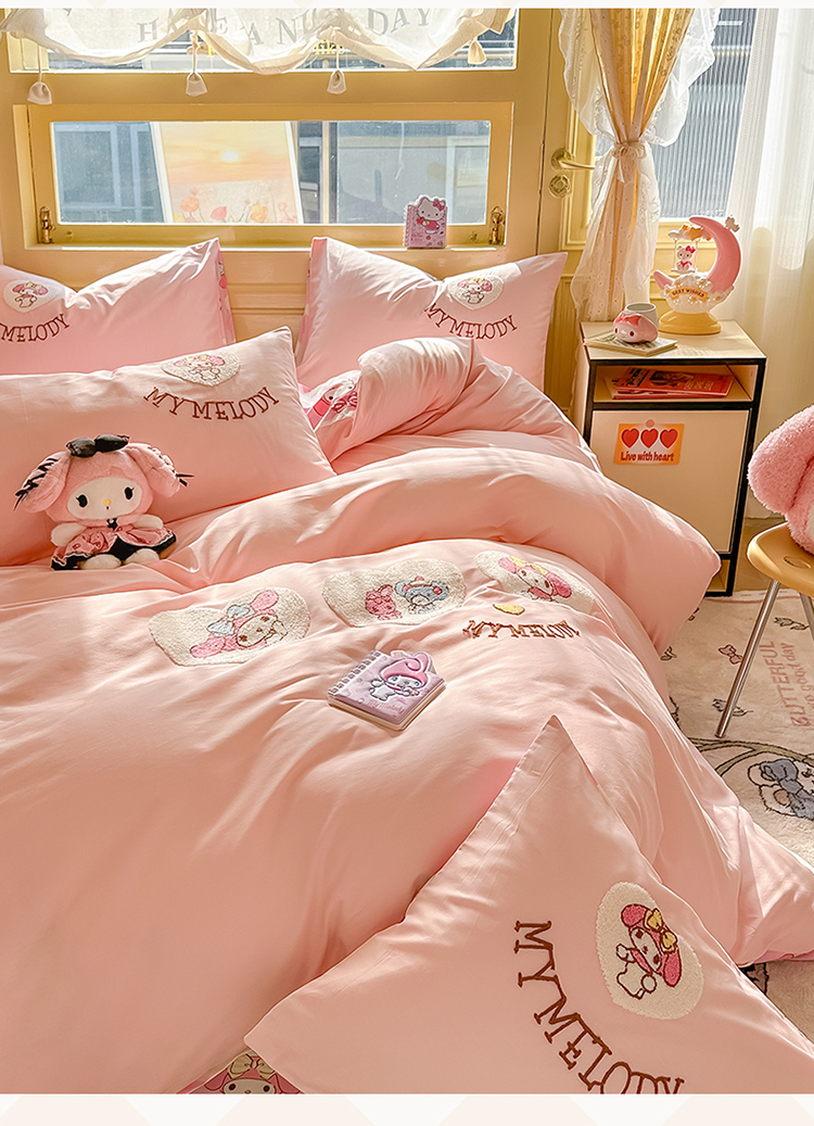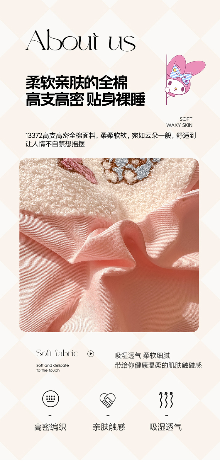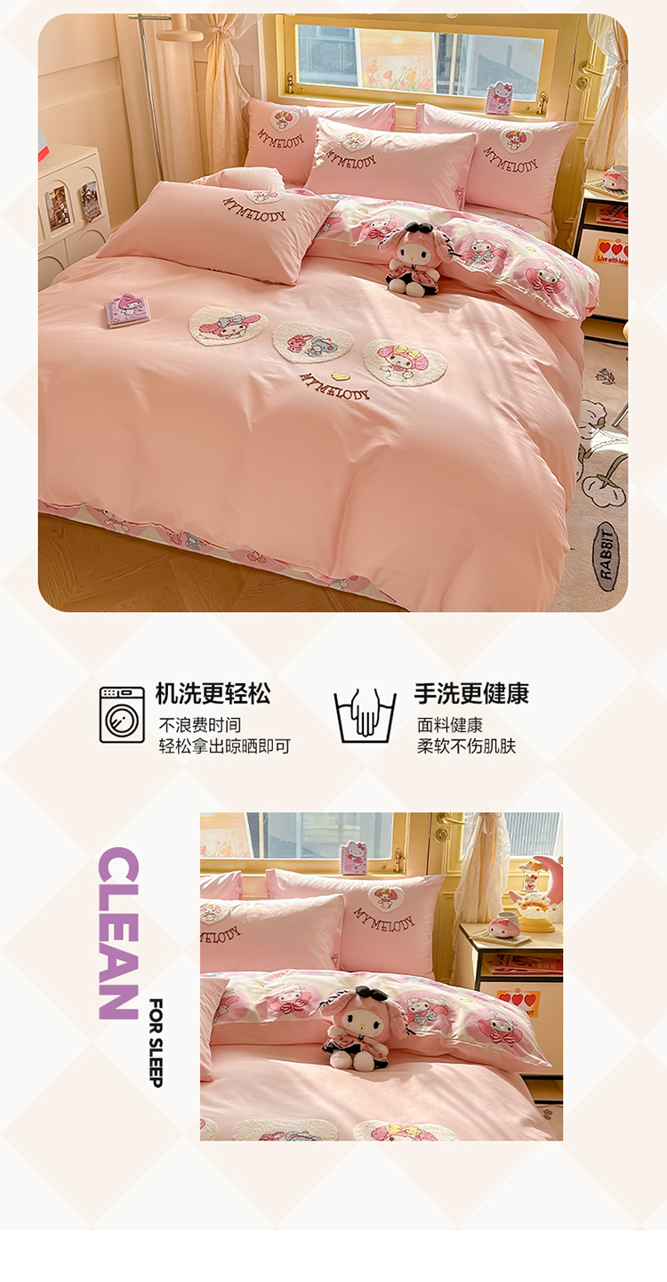 当前位置: 91家纺网 > 商品网购 > 床品套件 > 四件套 > 毛巾绣四件套 > 沐辰家居 2024新款毛巾绣正版授权三丽鸥系列 绣花款-甜心美乐蒂-浅粉