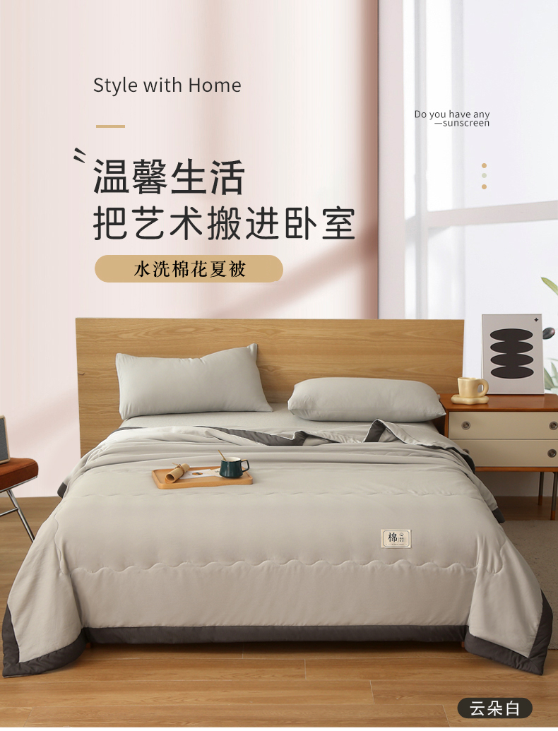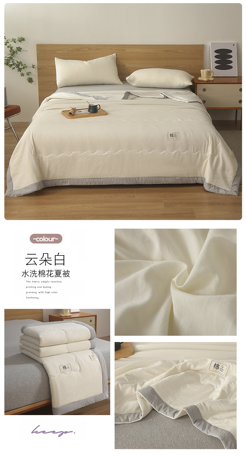 商品名称:猎鹿人家纺 2024新款纯色水洗棉纱棉花夏被 云朵白