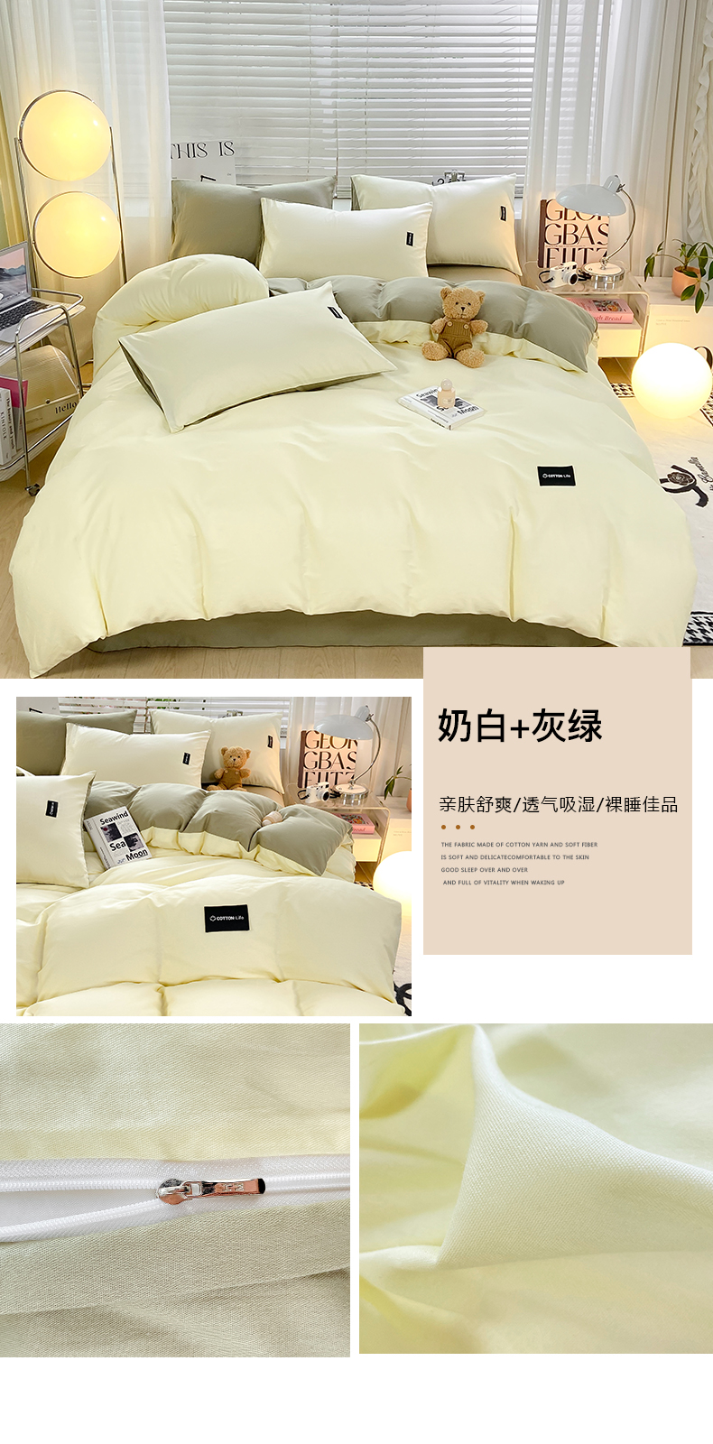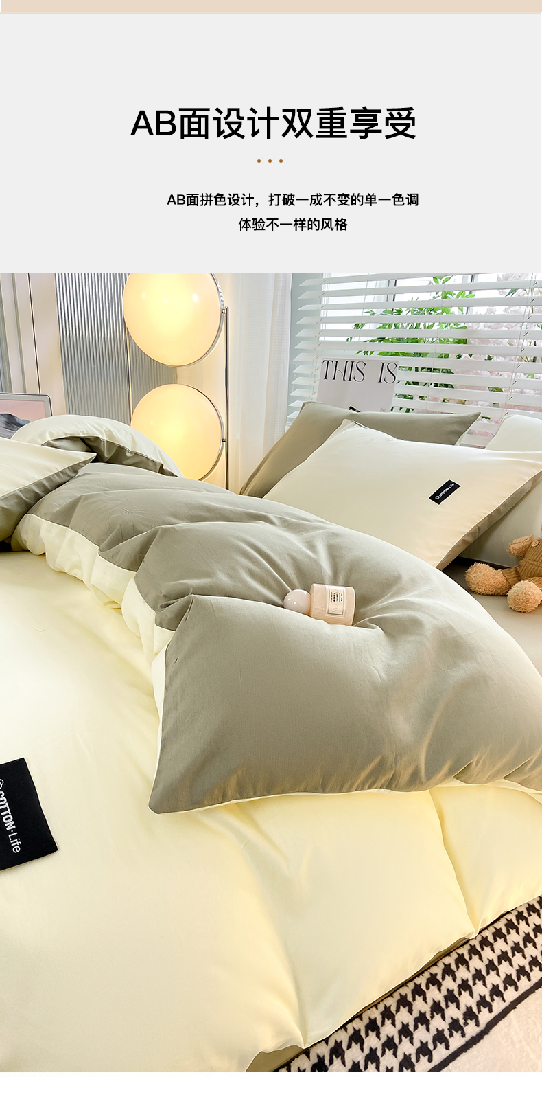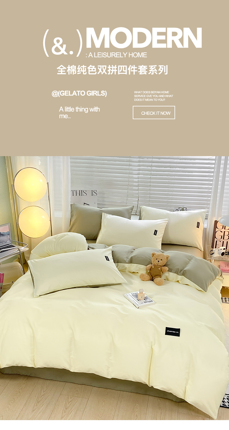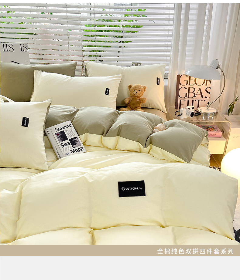 当前位置: 91家纺网 > 商品网购 > 床品套件 > 四件套 > 全棉普通四件套 > 黑马家居 2024新款双拼全棉四件套 奶白+灰绿