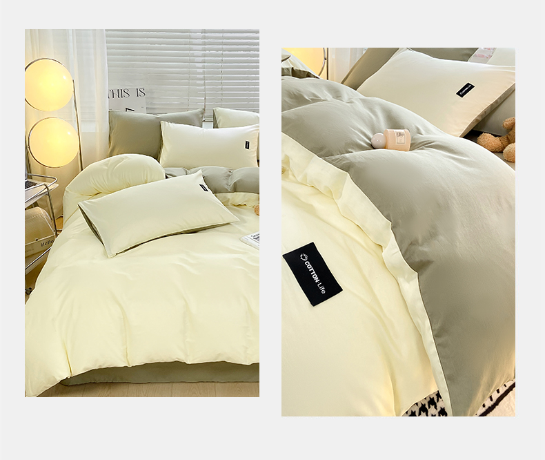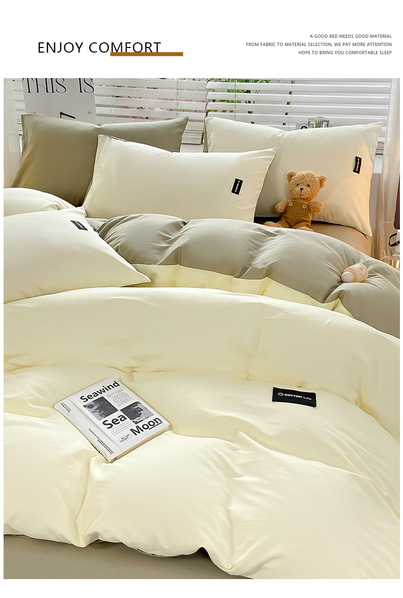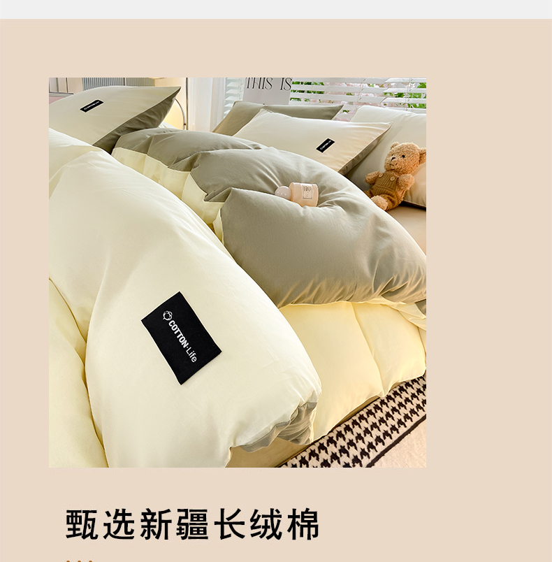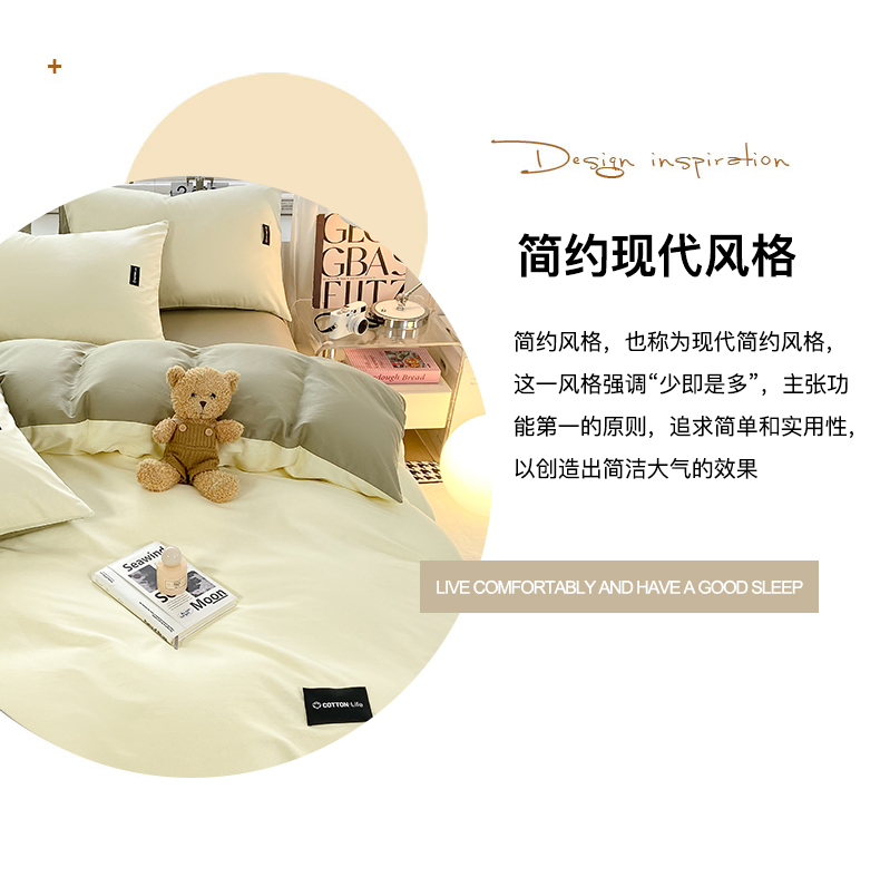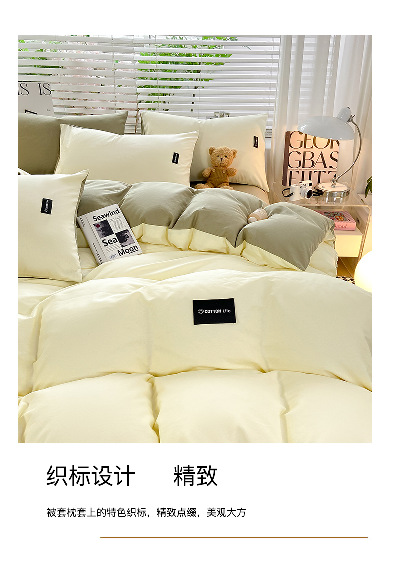 当前位置: 91家纺网 > 商品网购 > 床品套件 > 四件套 > 全棉普通四件套 > 黑马家居 2024新款双拼全棉四件套 奶白+灰绿