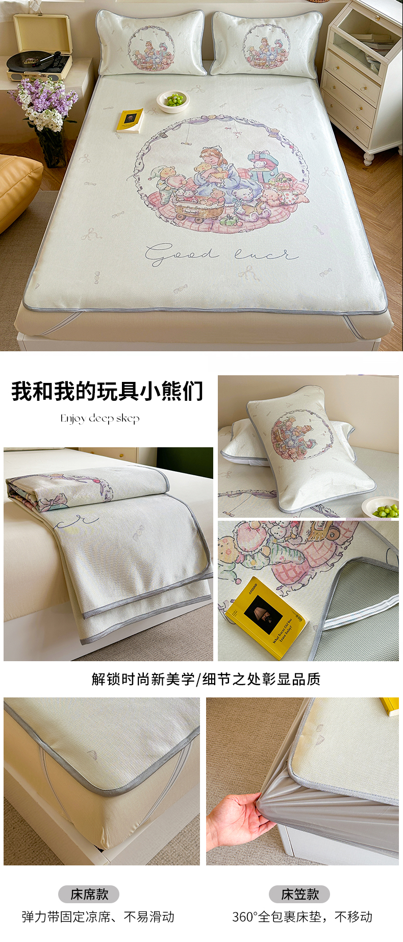 当前位置: 91家纺网 > 商品网购 > 床上用品 > 凉席 > 冰丝席 > 萝莉家纺 2024新款大版印花冰丝凉席床席床笠款 我和我的玩具小熊们-床笠款