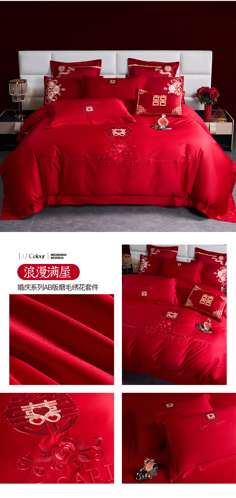 当前位置: 91家纺网 > 商品网购 > 床品套件 > 四件套 > 婚庆四件套 > 千禧2024婚庆系列AB版磨毛绣花套件 浪漫满屋