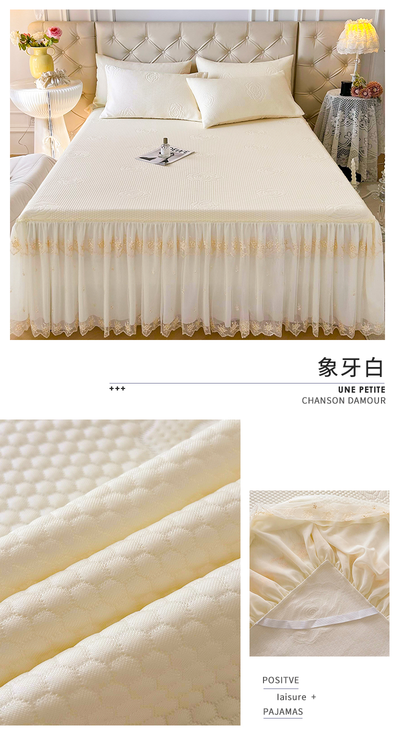 恒爱A类冰丝豆豆床裙款国色天香系列凉席 象牙白