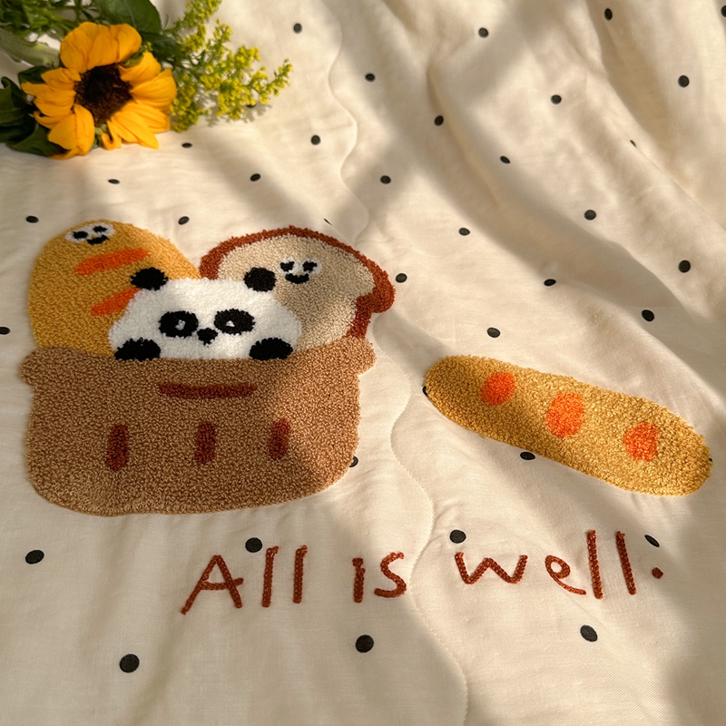 洋铭区(原狠狠爱) 2024新款双层纱毛巾绣夏被 熊猫面包