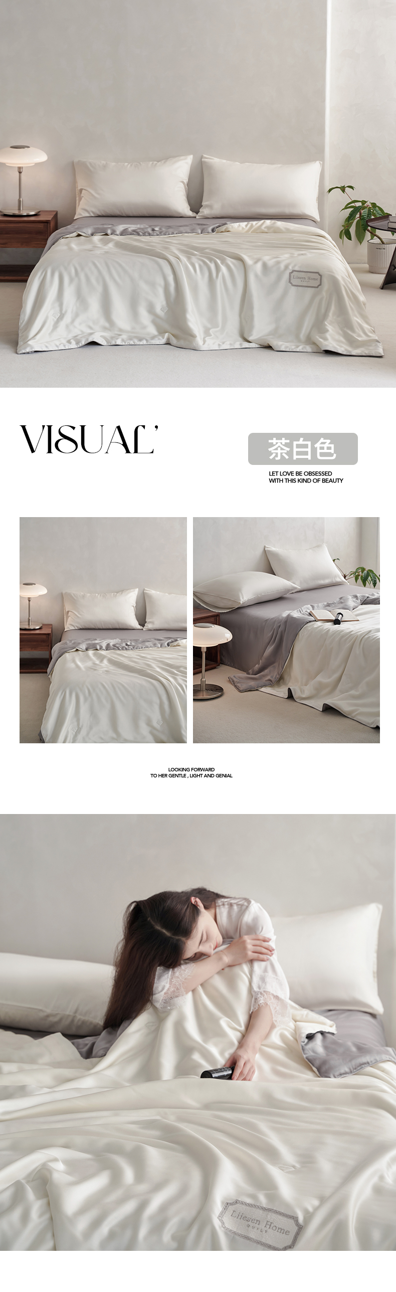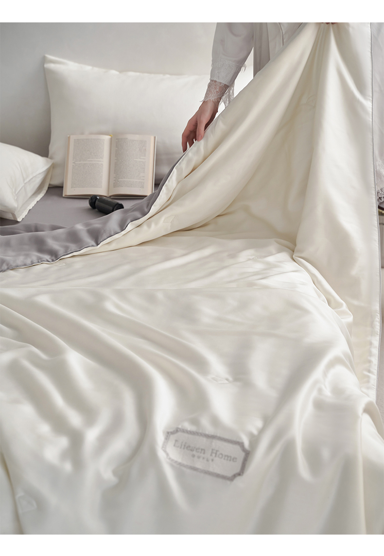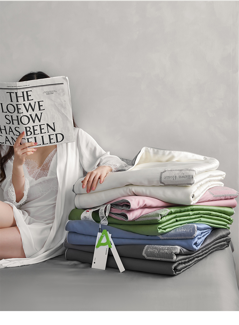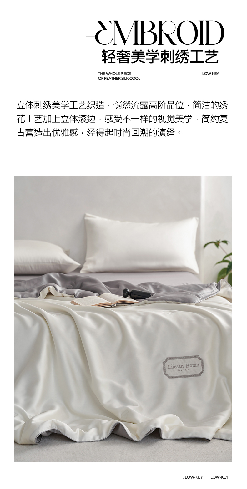• 91家纺网 家纺一手货源 找家纺 丽笙 2024新款A类兰精天丝素色刺绣夏被被子被芯 炫彩色茶白色