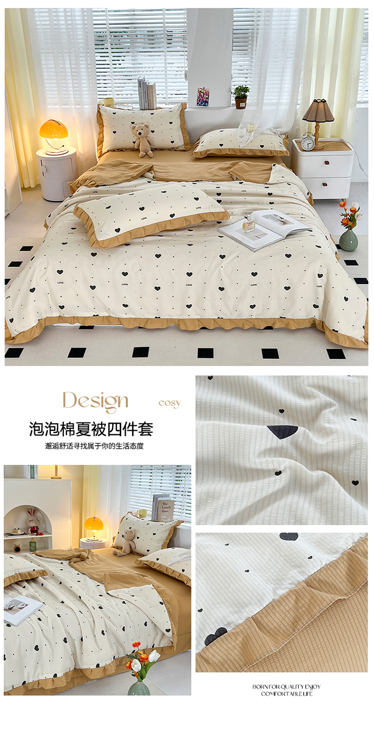 富之航 2024新款时尚舒适泡泡棉夏被四件套心动