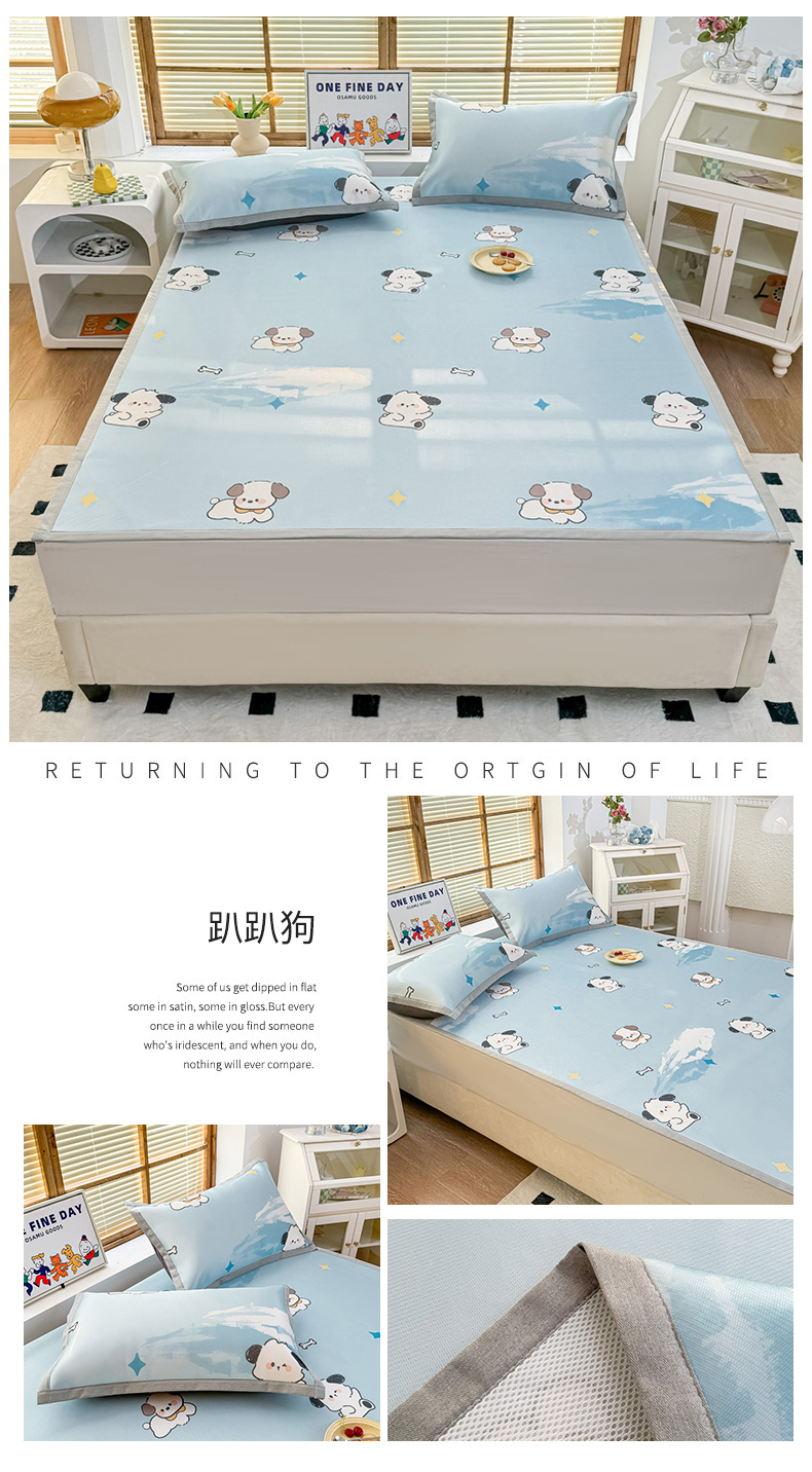 • 91家纺网 家纺一手货源 找家纺 栩裕纺织 2025款数码印花1200D碳光牛奶冰丝凉席 趴趴狗