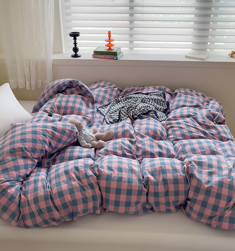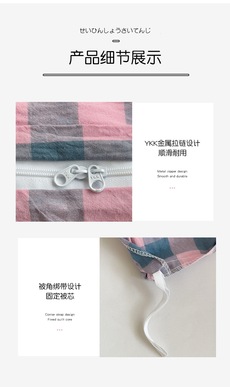 商品名称:大柏树 2025新款A类色织全棉水洗棉单品系列-单被套 粉灰小格