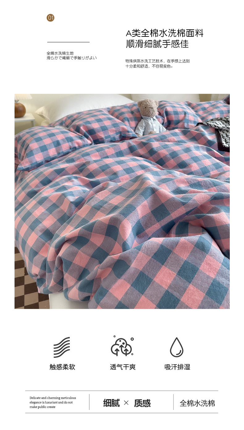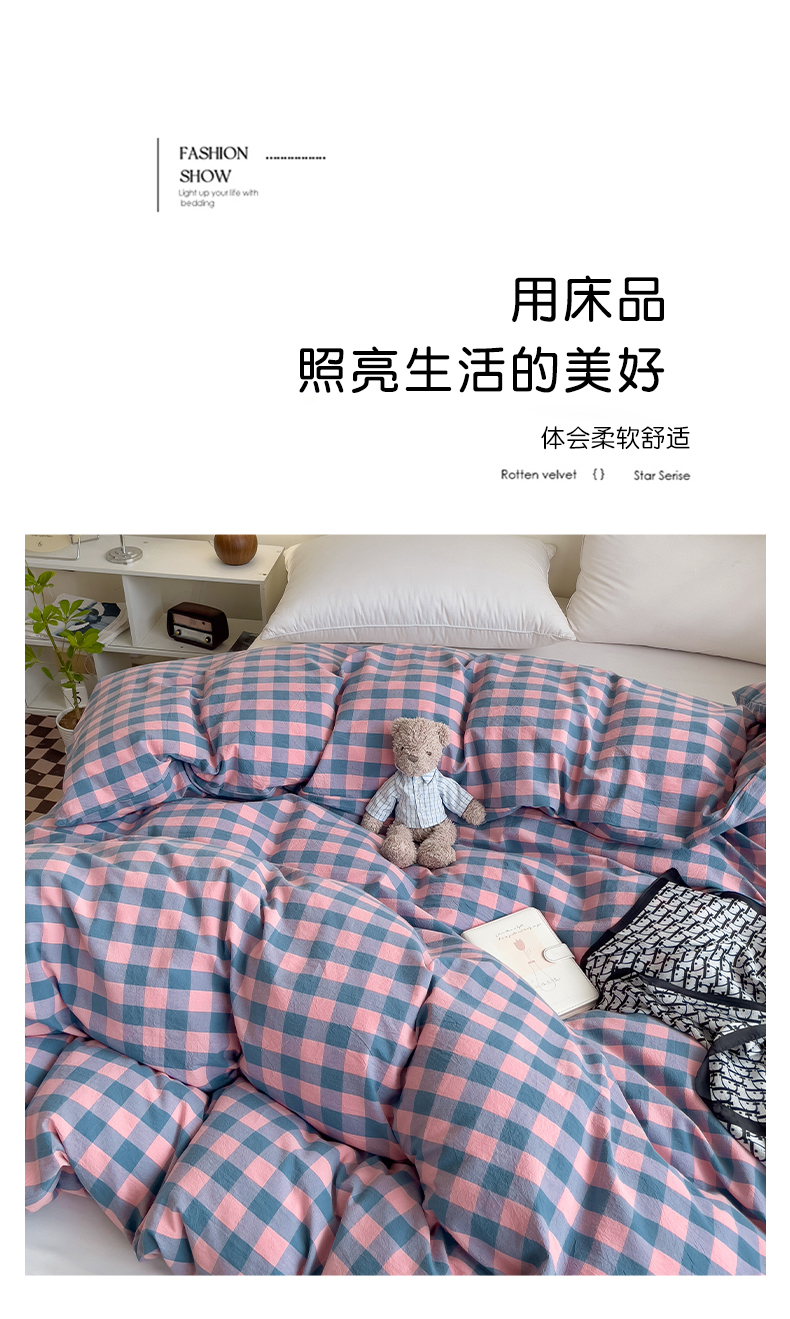 (总)大柏树 2025新款全棉水洗棉套件-床笠四件套,艾莎绿小格,春野咖,春野兰,春野玉,绿紫中格,洛伊粉咖小格,莫妮卡,诺卡,日落红,日落灰,云素红,云岫粉咖,云岫绿咖