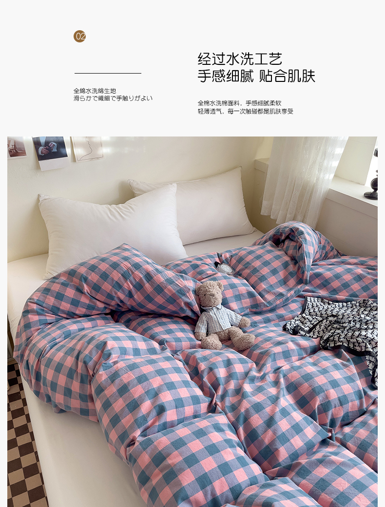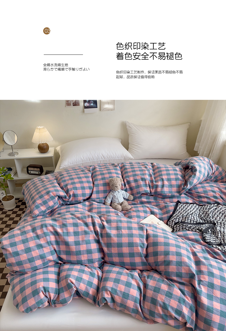 (总)大柏树 2025新款A类色织全棉水洗棉无印风四件套床单被套枕套,粉灰小格,黑白中格,黄粉三分格,灰细条,简兮兰,蓝大格,蓝黄三分格,蓝灰中格,蓝细条,流年灰,绿大格,绿灰小格,绿小格,米小格,牛油果大格,浅蓝小格,如意玉,森林桔,斯诺克,小冰激凌,英伦桔,英伦蓝,紫粉三分格,紫黄三分格