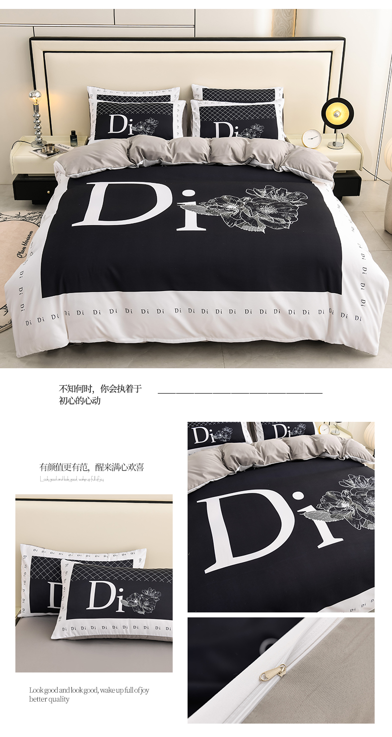 (总)色鬼布艺高端家居主号 2025新款轻奢亲肤纯棉数码印花网红热款四件套,豹纹香,白金V,白香花,大H,黑白迪,黑白V,灰迪,咖古,克莱因,慕斯小姐,山茶花,星空