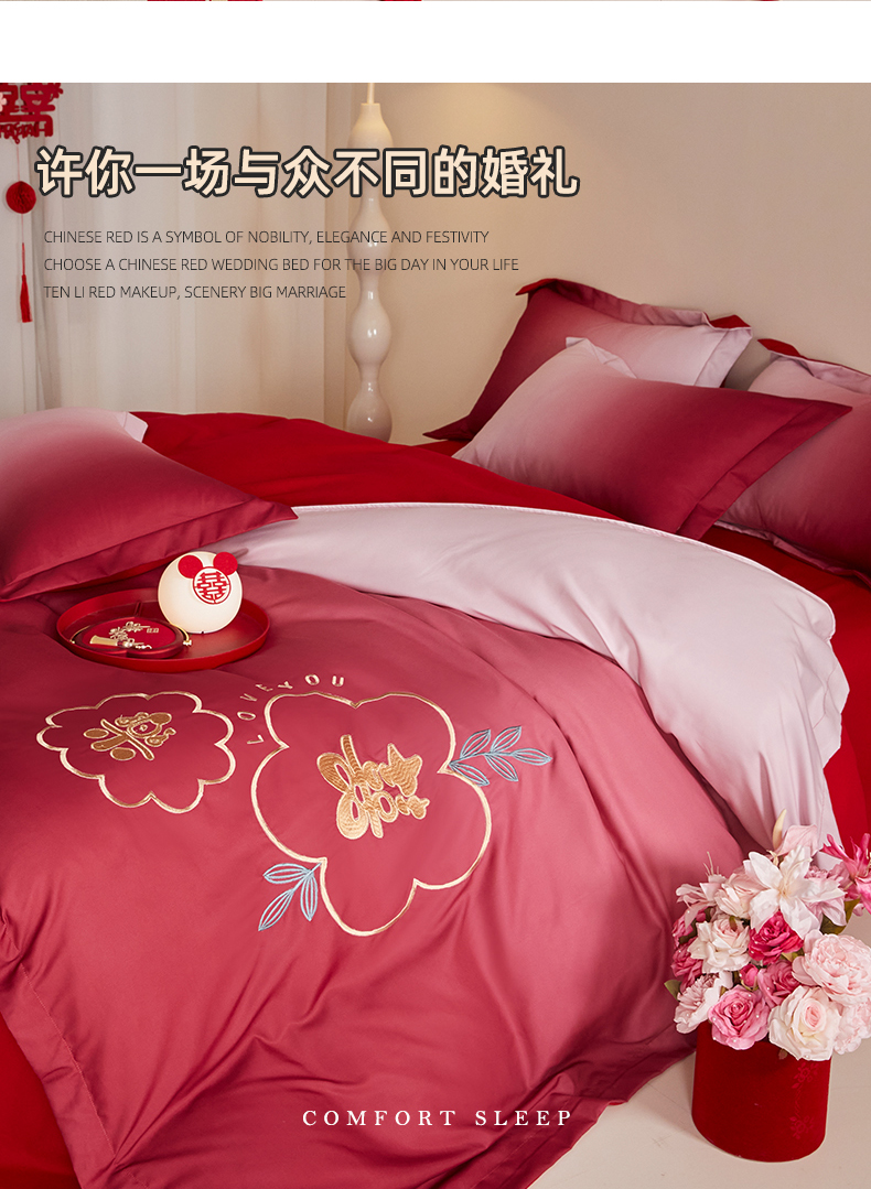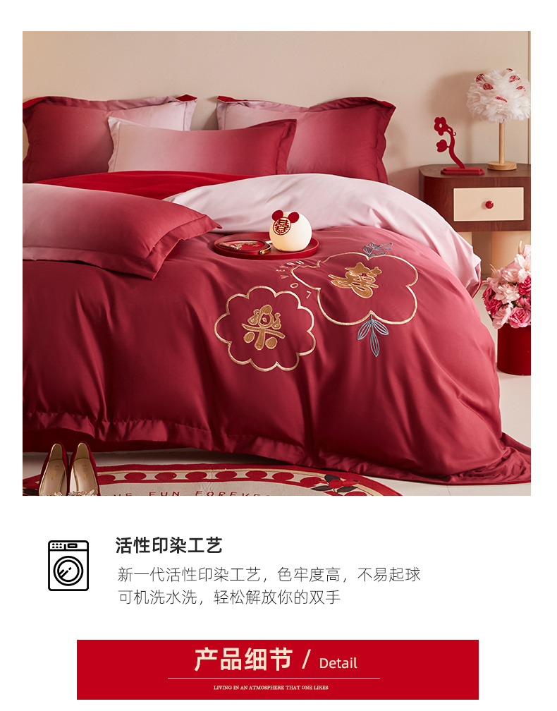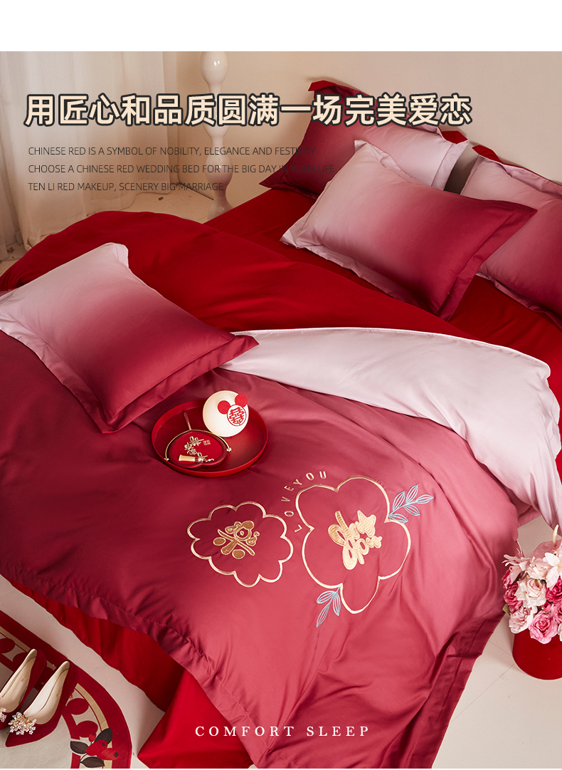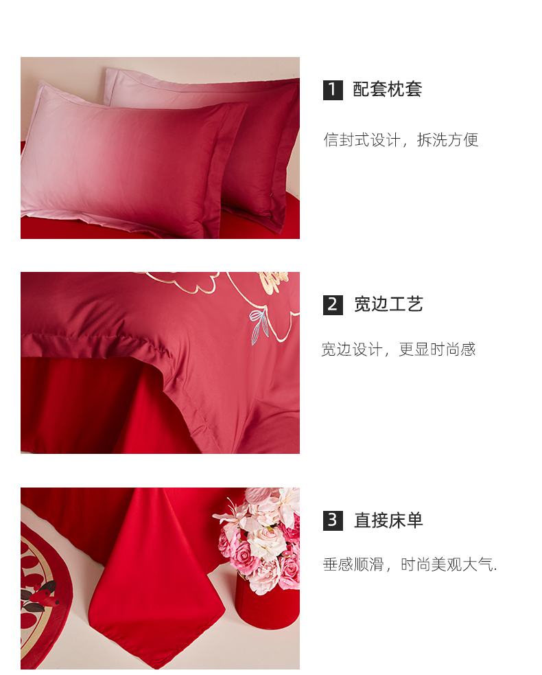 当前位置: 91家纺网 > 商品网购 > 床品套件 > 四件套 > 婚庆四件套 > 玉雅家纺 2025新款磨毛时尚浮雕花边款床裙婚庆四件套 渐变款-爱的约定