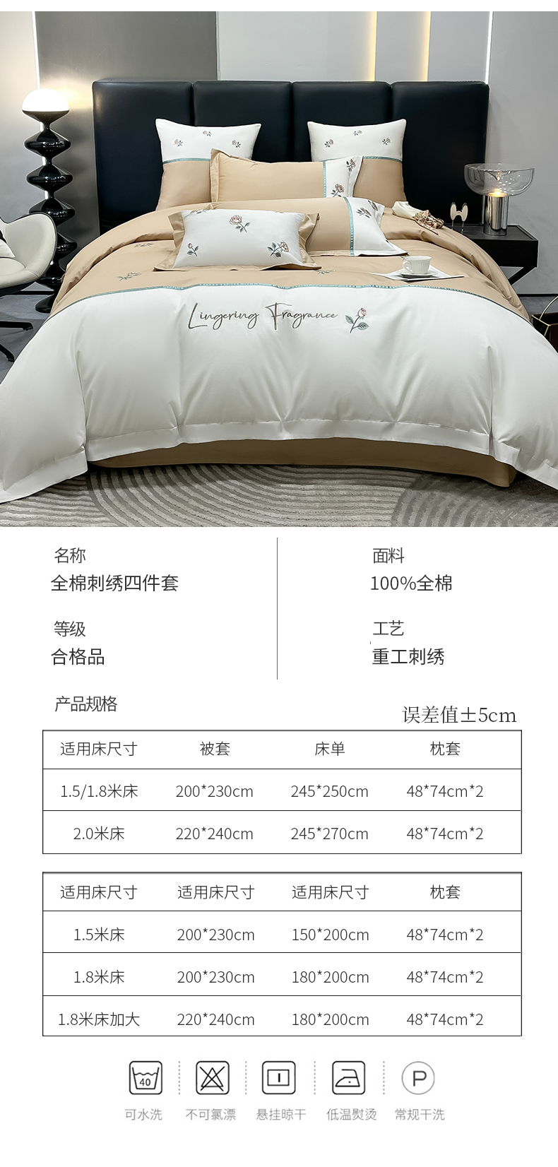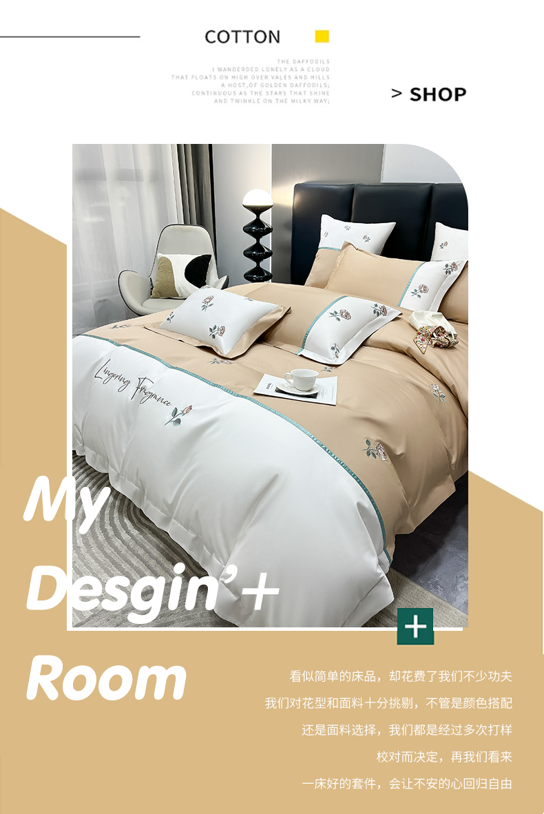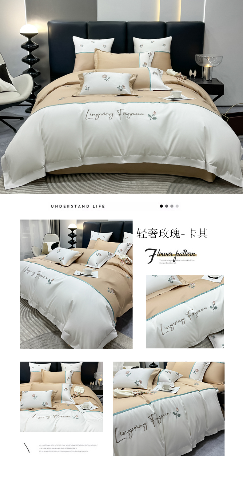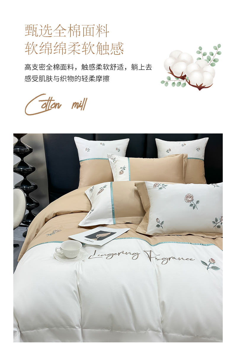 当前位置: 91家纺网 > 商品网购 > 床品套件 > 四件套 > 全棉普通四件套 > 家居1号家纺 2024新款13376全棉刺绣四件套-轻奢玫瑰 轻奢玫瑰-卡其