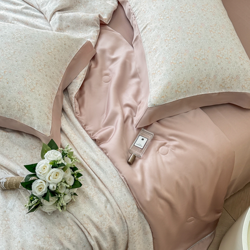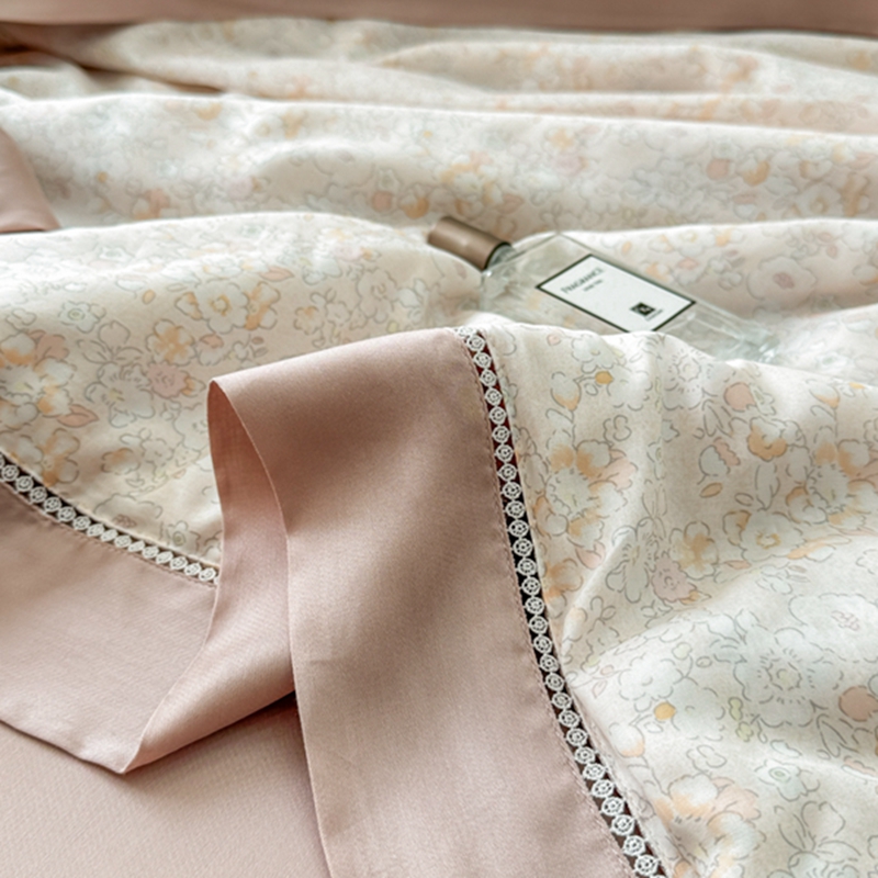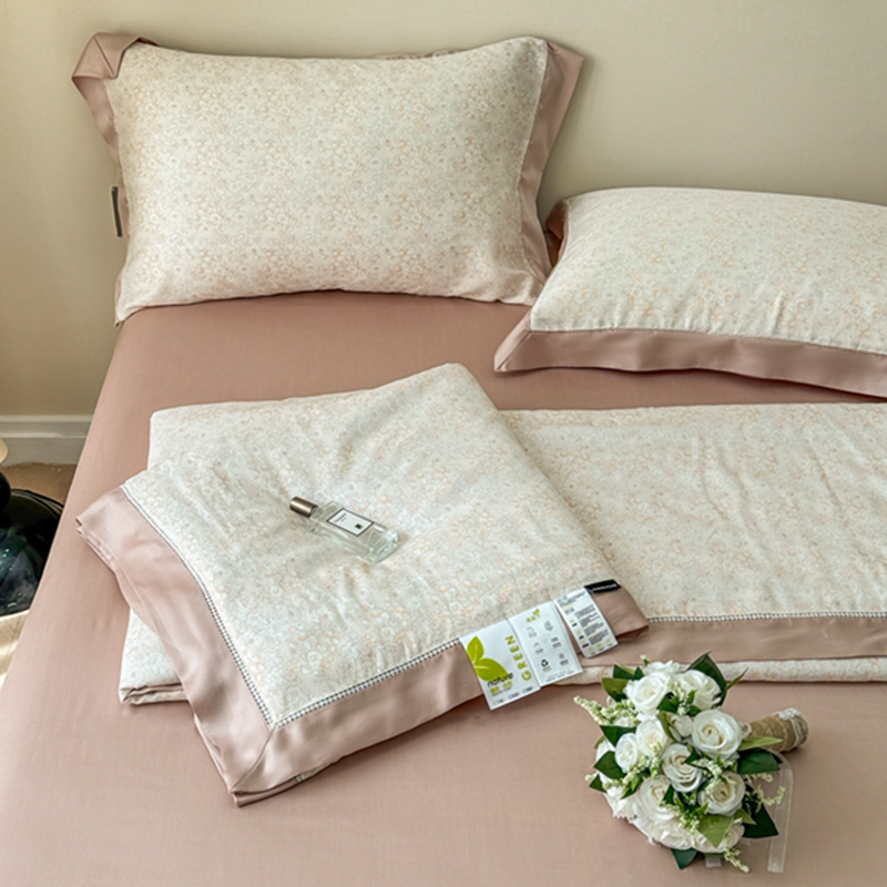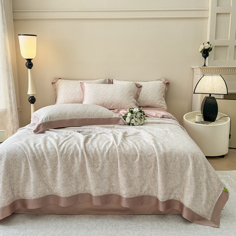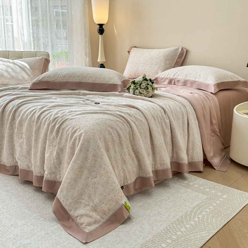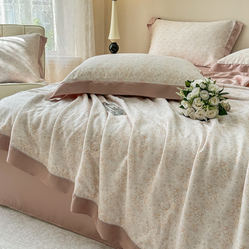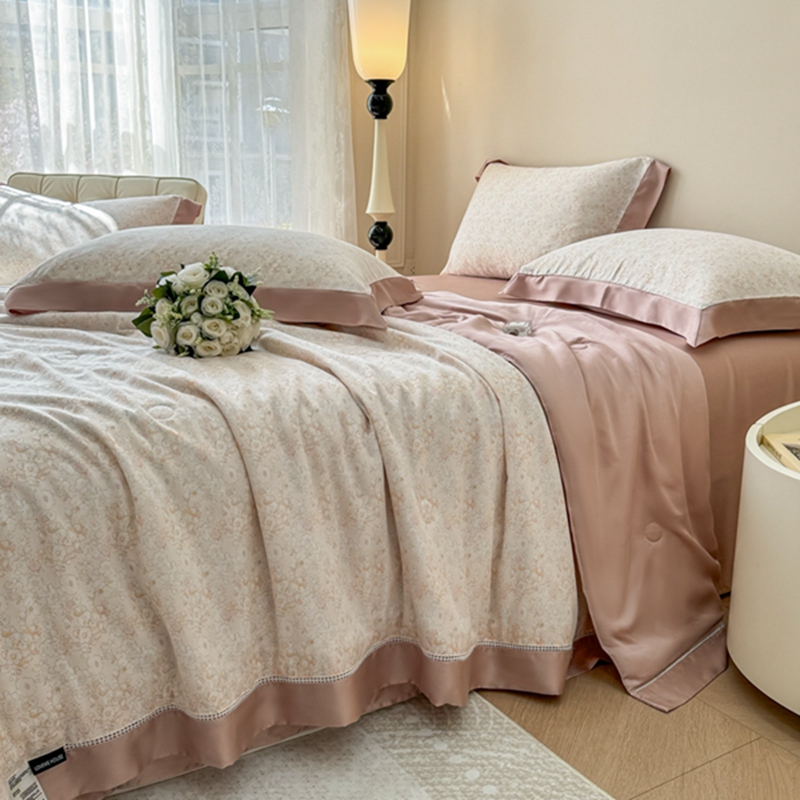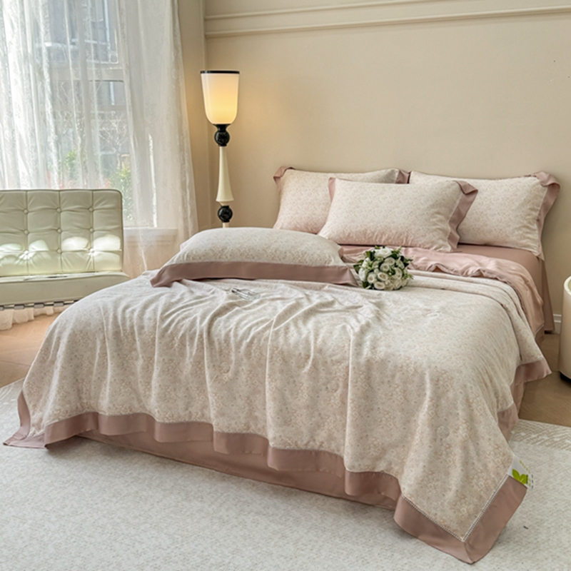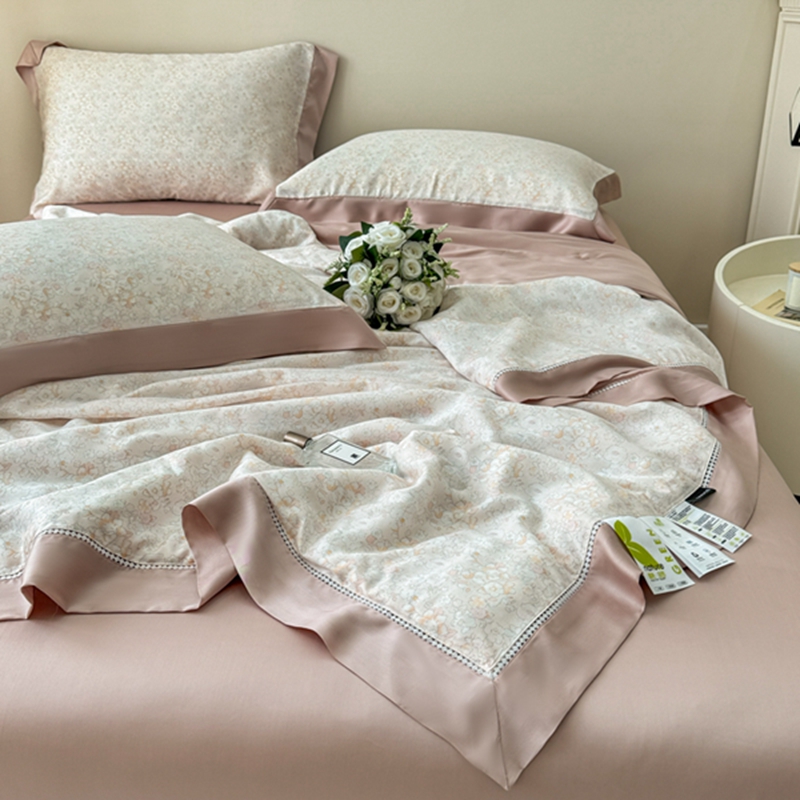 (总)若未2025新款法式莱赛尔天丝印花镂空夏被和夏被四件套