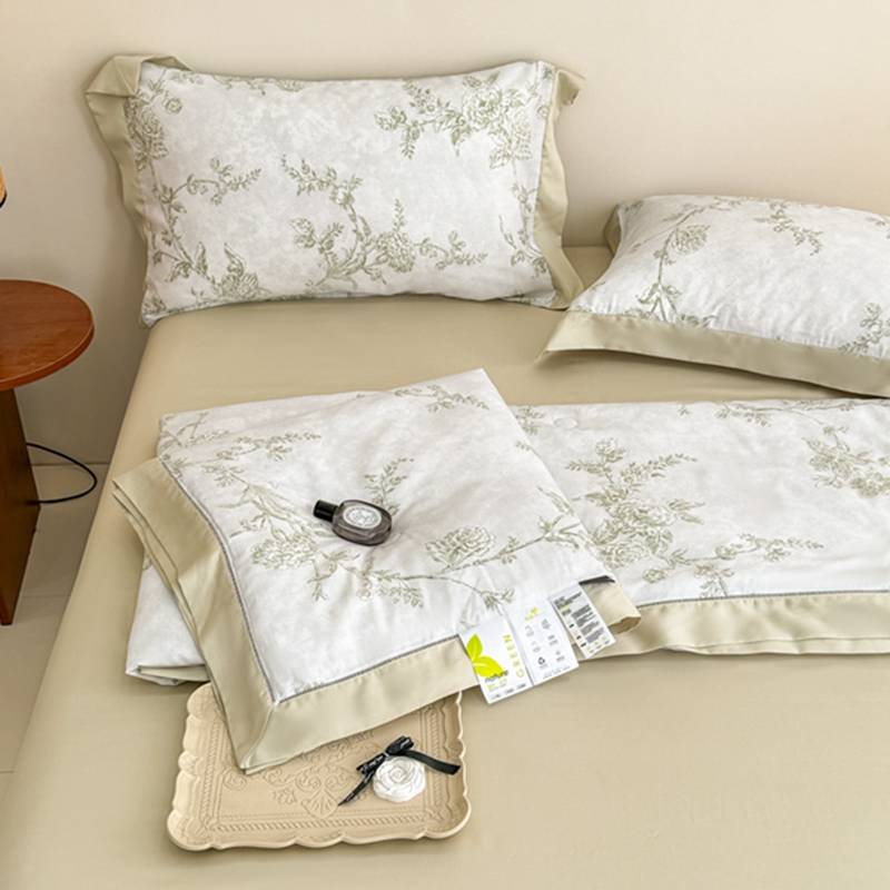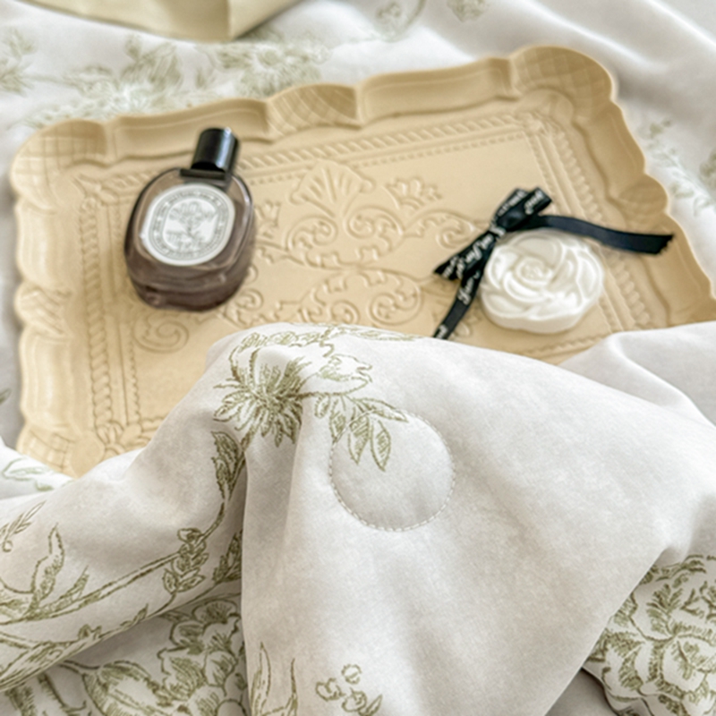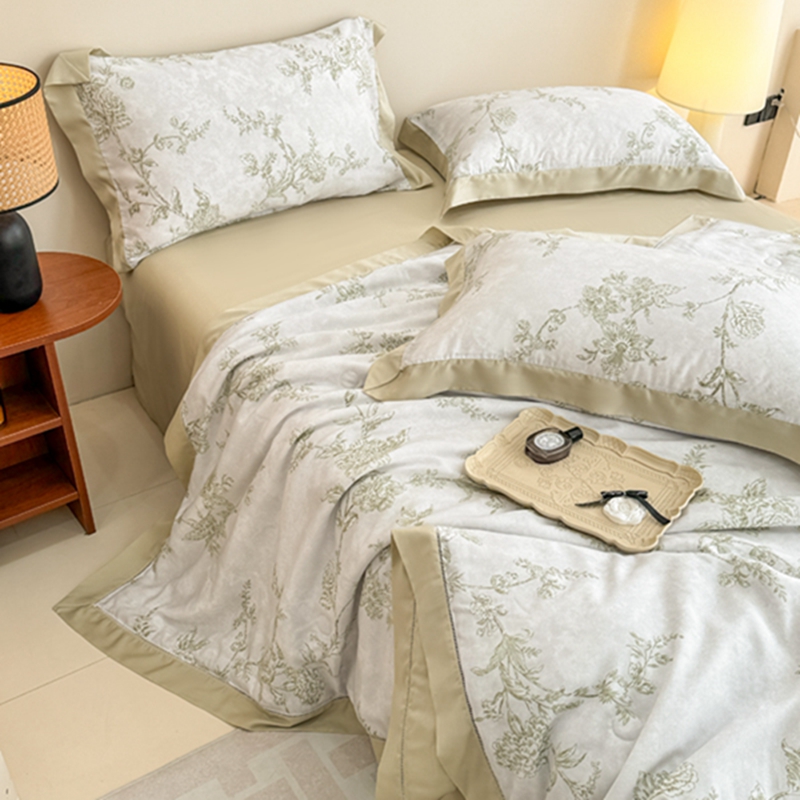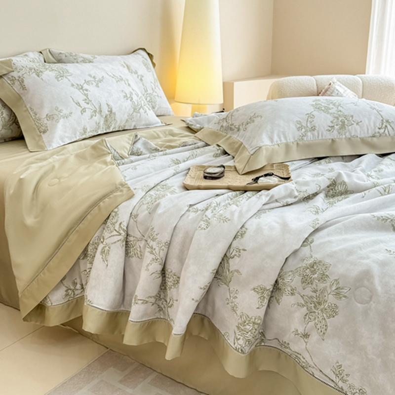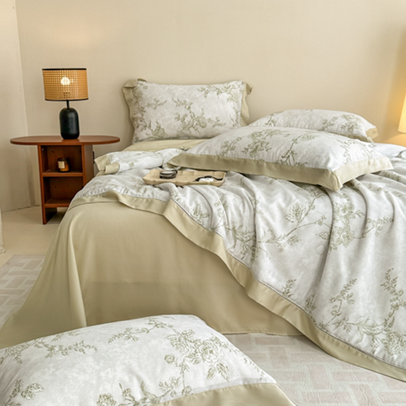 商品名称:若未2025新款法式莱赛尔天丝印花镂空夏被和夏被四件套 美人蕉(绿)