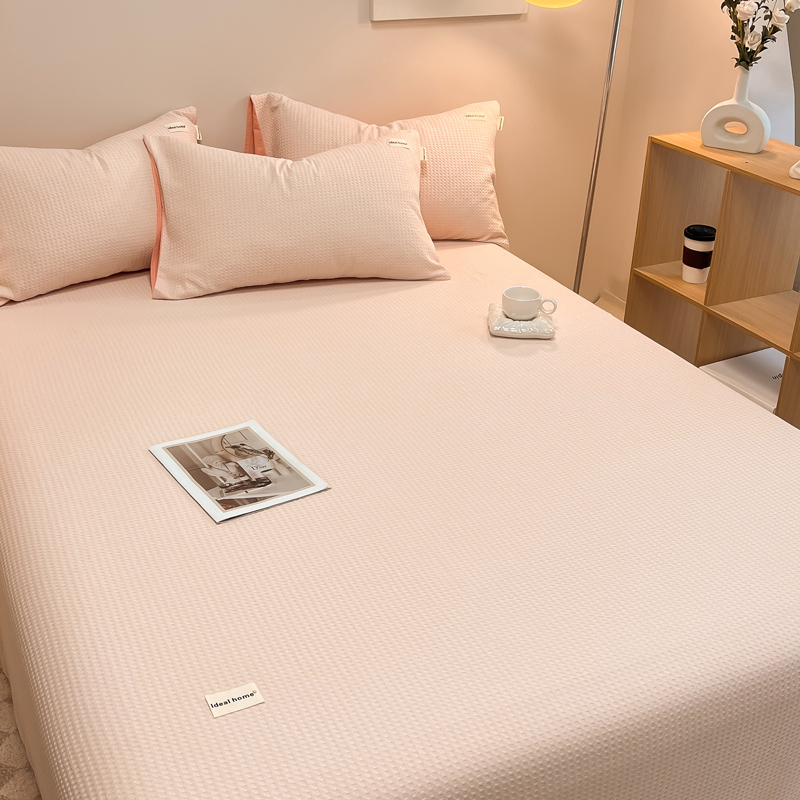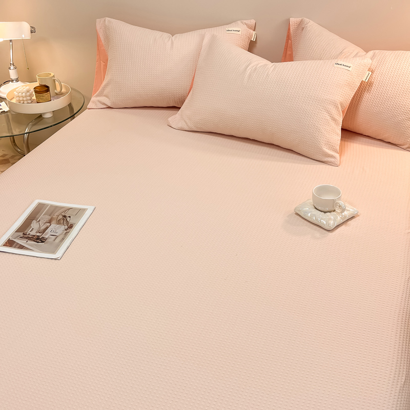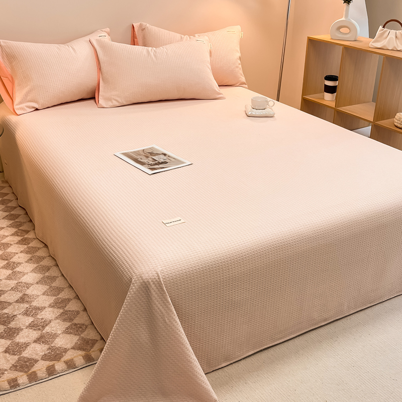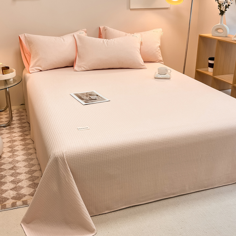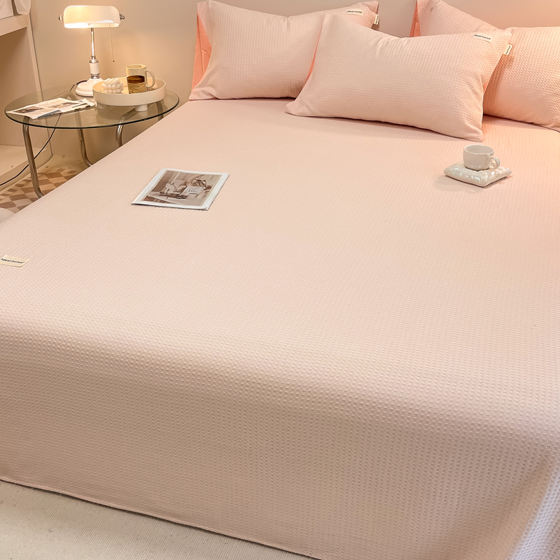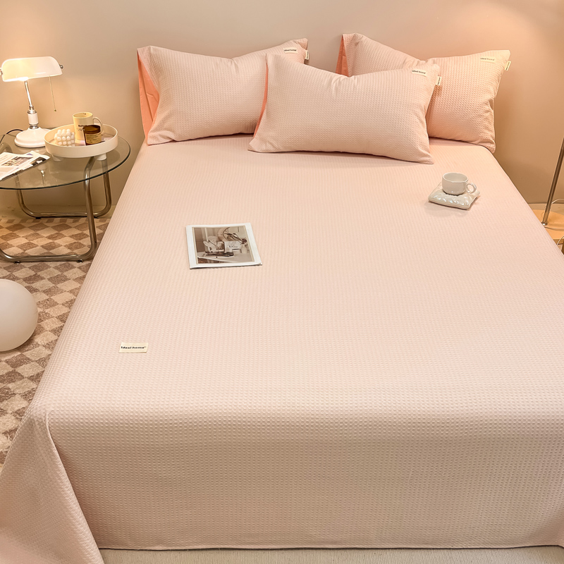 2024沐辰家居-华夫格系列床单单品 柔粉