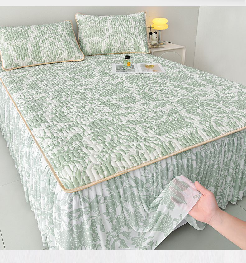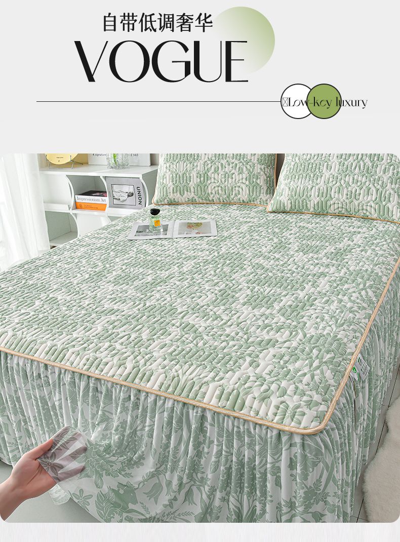 布卢姆床垫2025新款5mm印花乳胶凉席凉感丝席床裙款 密林-绿