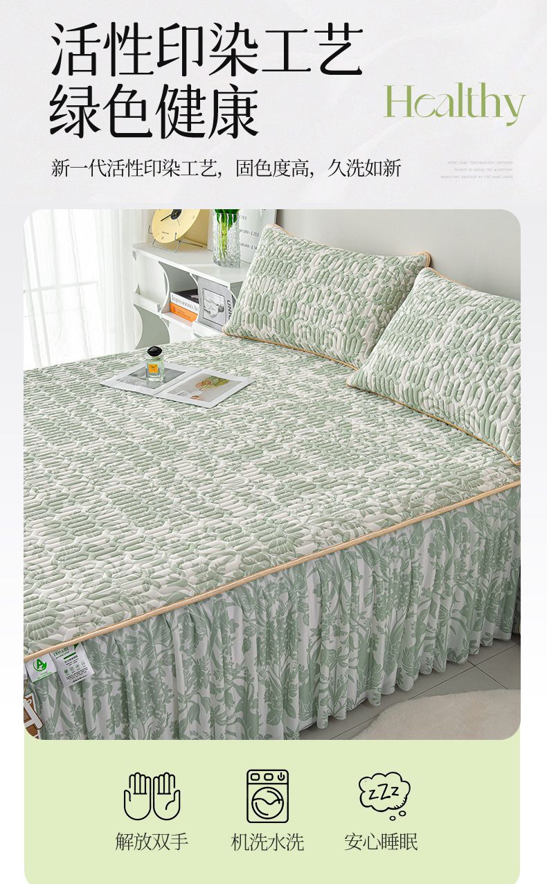 商品名称:布卢姆床垫2025新款5mm印花乳胶凉席凉感丝席床裙款 密林-绿