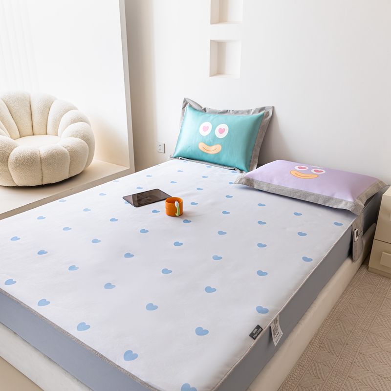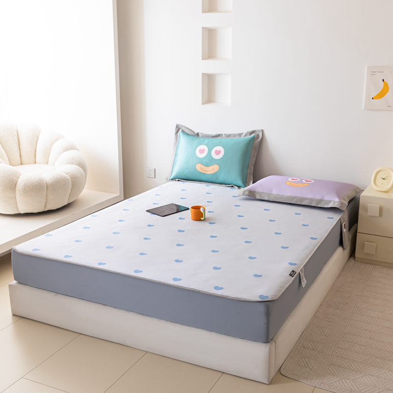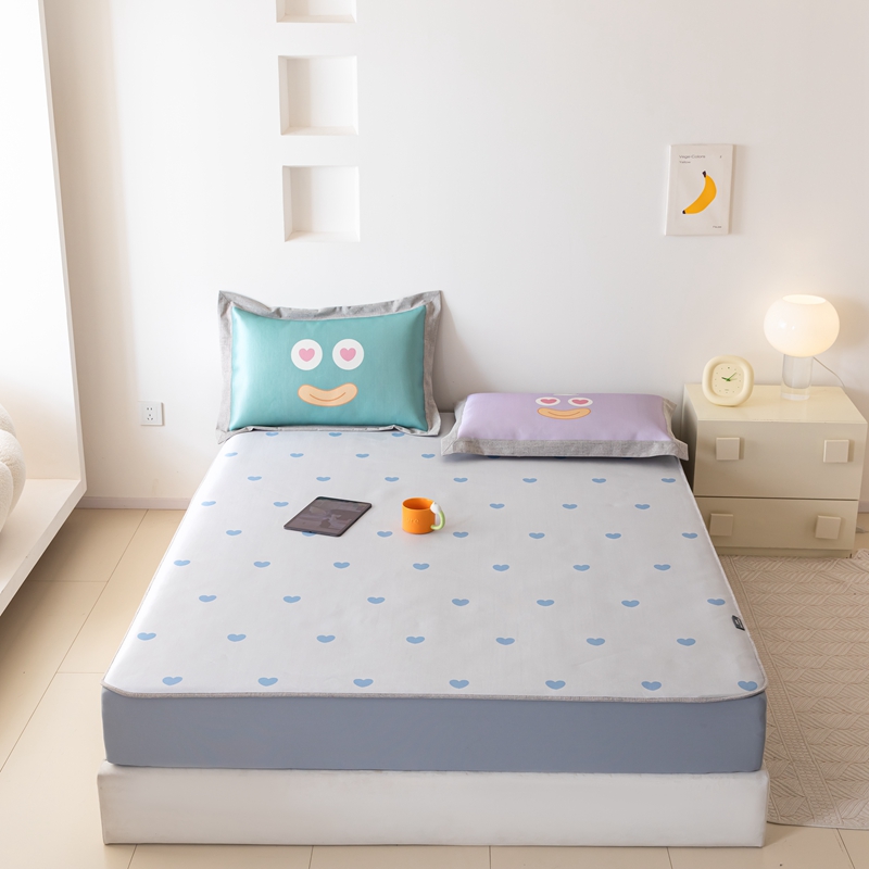 本希家居 2024新款花漾清新系列高端可水洗冰丝席 淘气爱心床笠