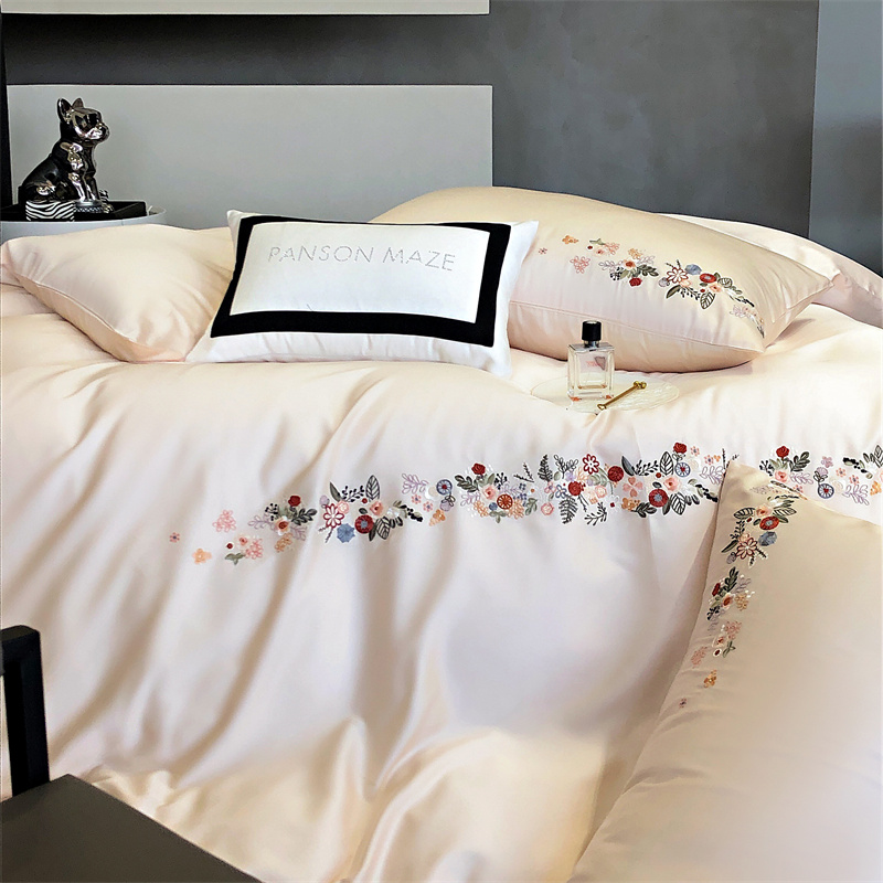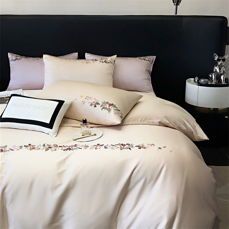 云胡 2024新款A类进口莱赛尔纤维棉四件套-四月系列 四月-泡芙粉