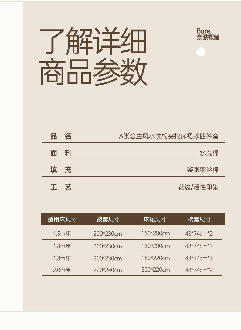 商品名称:(总)罗艺轩 2024新款公主风水洗棉夹棉床裙款四件套-浪漫满屋床