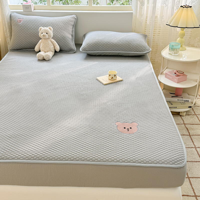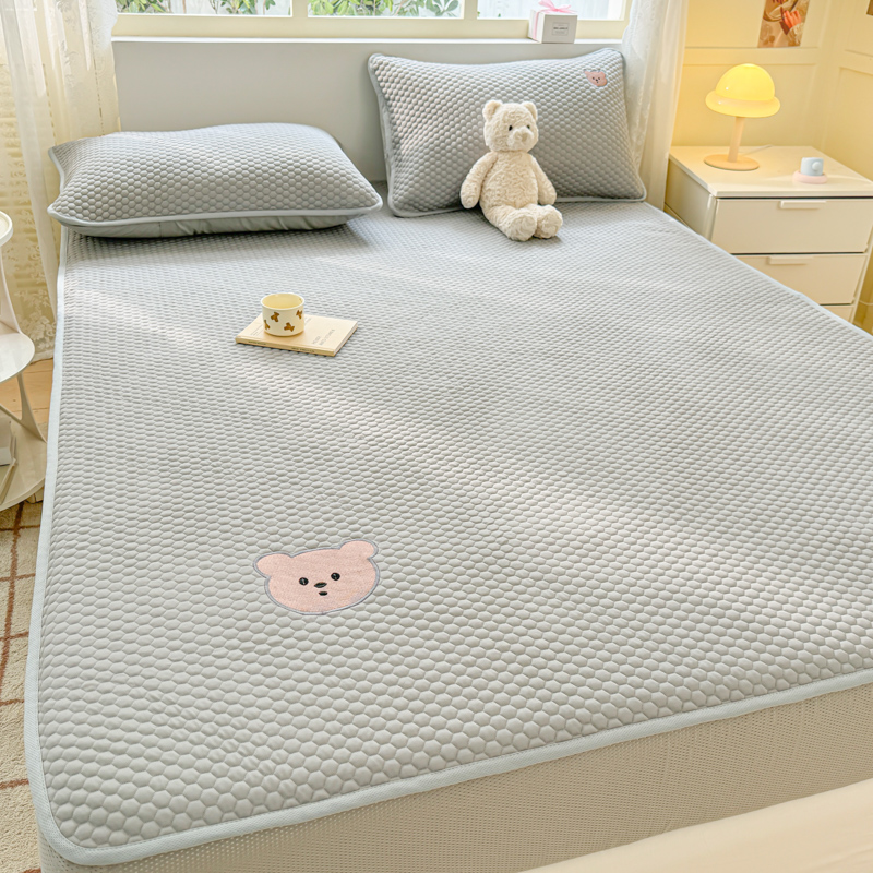 慕尚家纺 2025新款冻冻席刺绣系列 凉冻冻席小熊灰