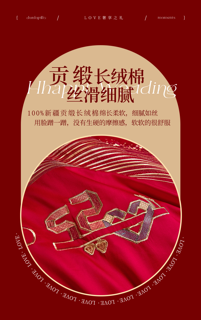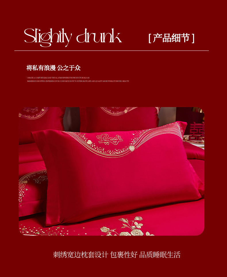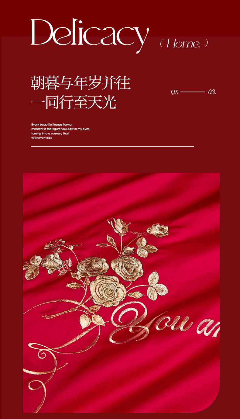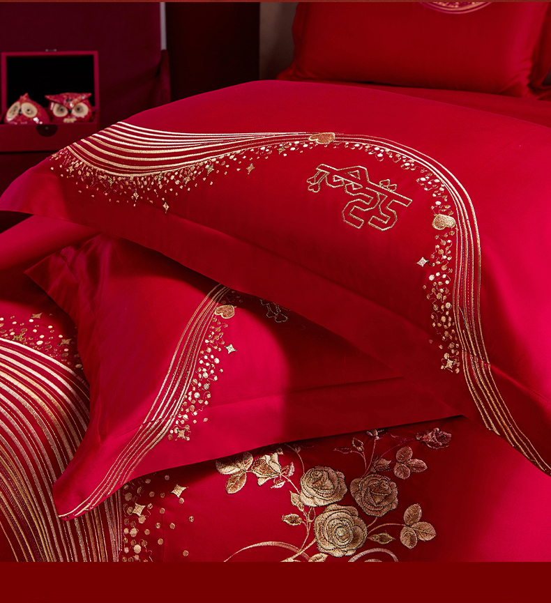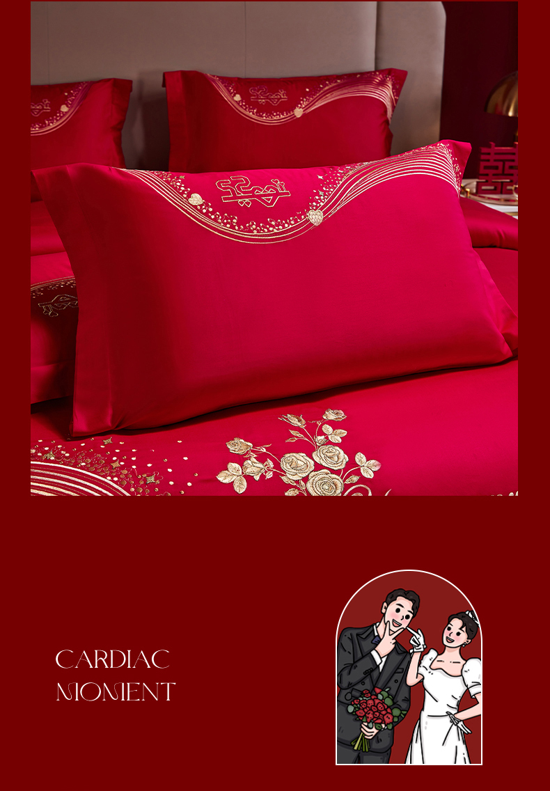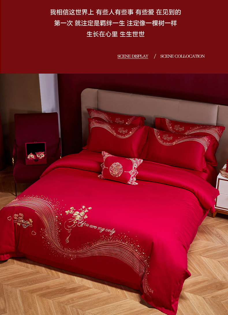 商品名称:晶缦家纺 2024纯棉全棉60支贡缎长绒棉刺绣花婚庆四件套--绣花贴边床单款 心心相印