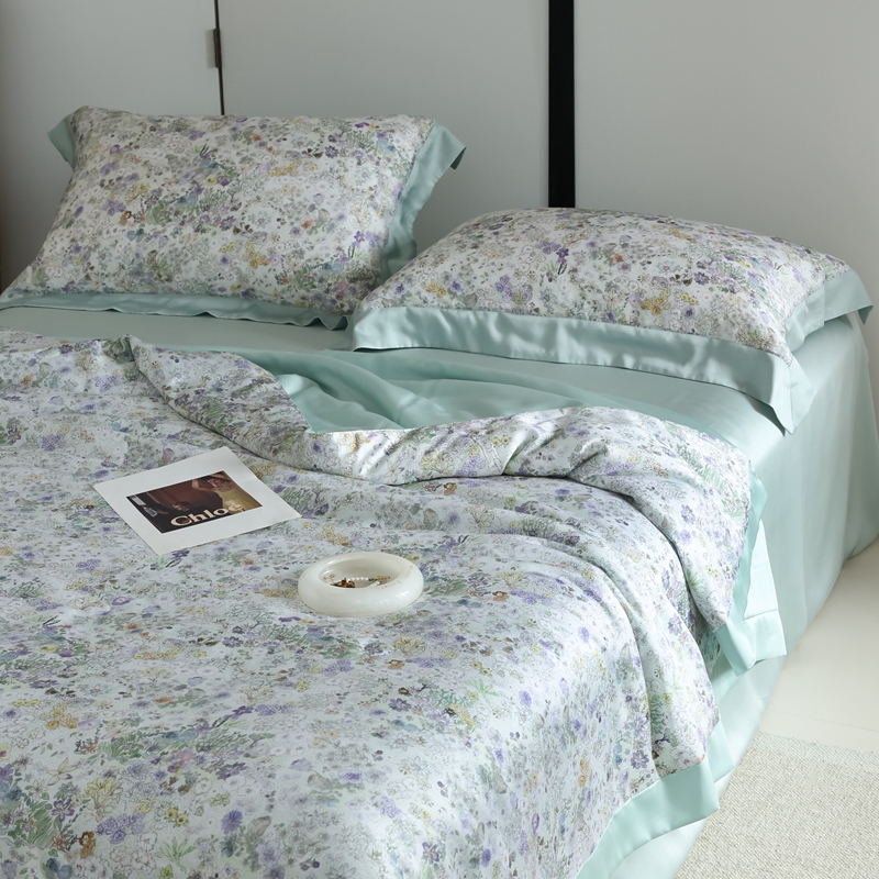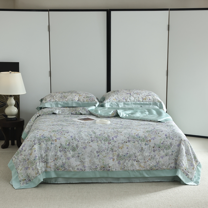 商品名称:玉宇阁家居 2024新款天丝印花夏被(宽边) 奶盐薄荷-薄荷绿