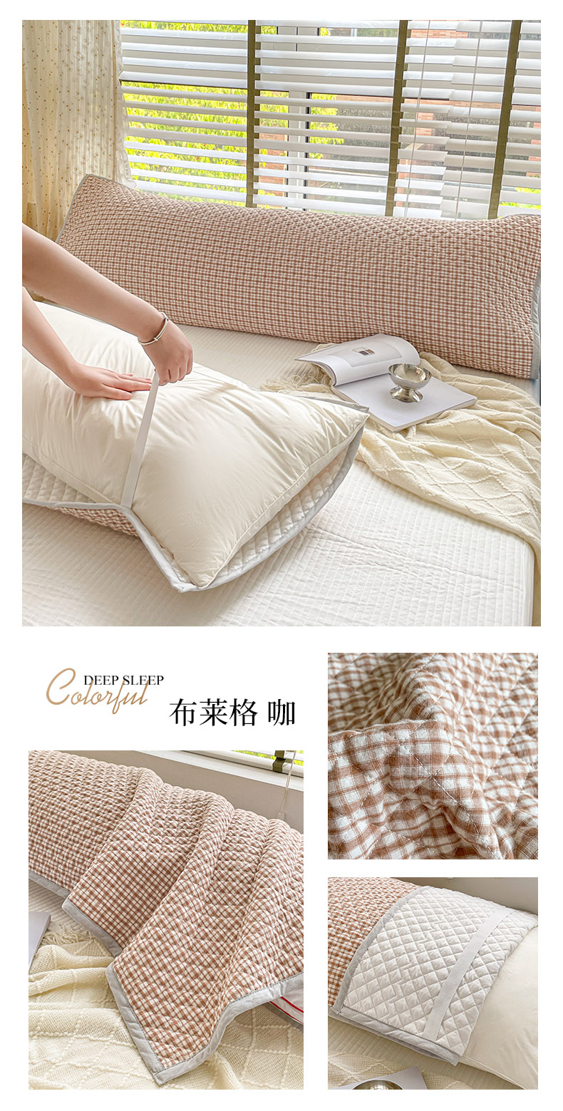 爱港家纺 2024新款全棉水洗色织绗缝双人长枕巾 情侣款枕套 防滑枕巾 布莱格-咖